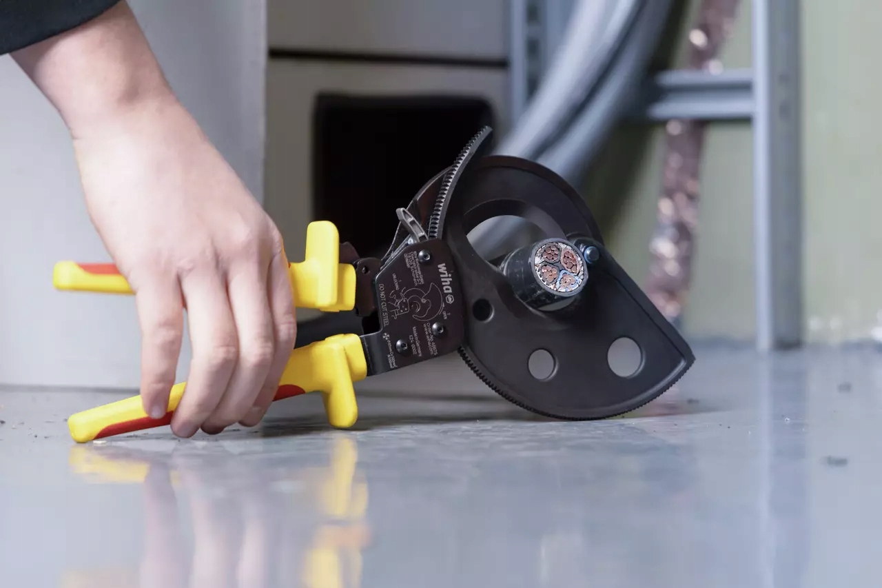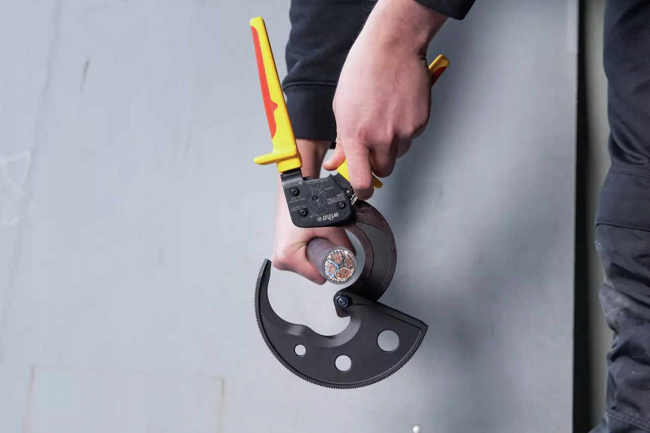 - Крім того, плоскогубці для проводів із співвідношенням брязкальців забезпечують легку та зручну роботу однією рукою, яка додатково підтримується ергономічними, м'якими ручками із захистом ковзання. Завдяки функції розблокування аварійного розбудови, процес різання можна зупинити вручну в будь -який час і вийняти кабель з леза.