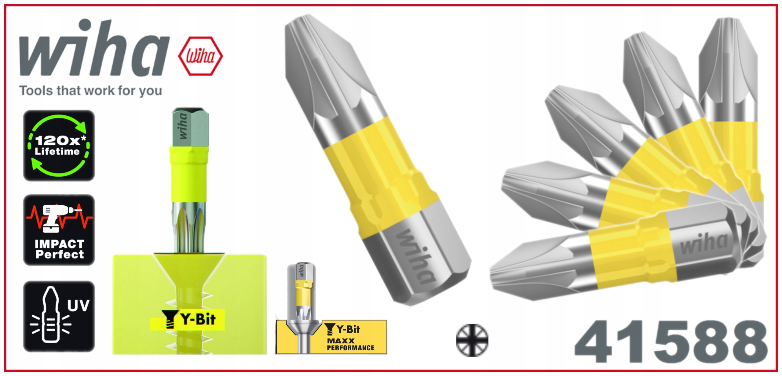При покупці бітів ви задумалися, який додаток тип біт повинен використовувати. Wiha ставить край цьому і сприяє процесу на свій вибір. Завдяки революційній концепції шматочків Wiha важлива лише форма головки гвинта, яка відіграє ключову роль у виборі трохи. Наприклад, біт "Y" ідеально підходить для гвинтових з'єднань, виготовлених з гвинтами у формі Y з кутом 90 ° між ниткою і головкою. Запатентована, подовжена зона кручення означає, що біт також підходить для викруток удару, забезпечуючи 120 разів довше життя порівняно зі стандартними шматочками Wiha. Крім того, завдяки покриттям люмінесцентного лаку ви можете швидко та легко знайти барвисті шматочки навіть у темряві за допомогою УФ -лампи. Це обмежує кількість втрачених бітів і, таким чином, економить непотрібні витрати.Стандарти
