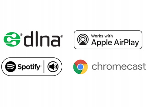 Підтримує протоколи передачі DLNA, AirPlay 2, Spotify Connect і Chromecast і надає доступ до музика, що зберігається на вашому комп’ютері, NAS або смартфоні.