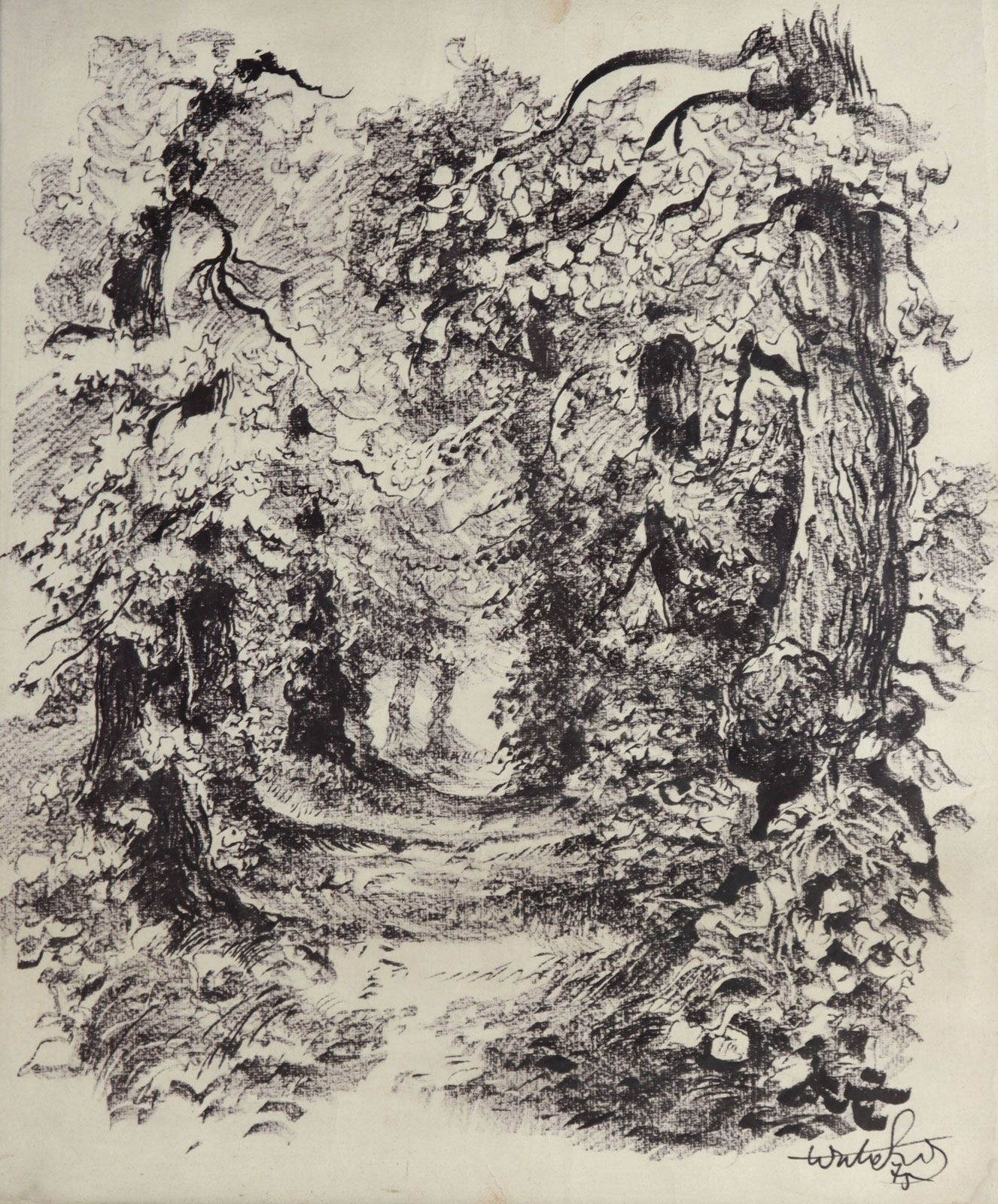 графіка, що зображує лісову доріжку, покриту дубами.