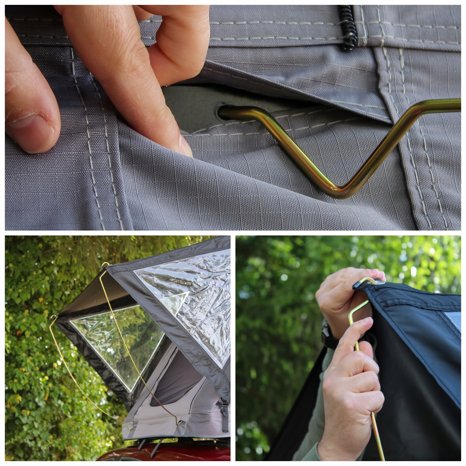 Кабелі, які притягують стінки намету на даху до його внутрішньої частини, що полегшує складання намету.