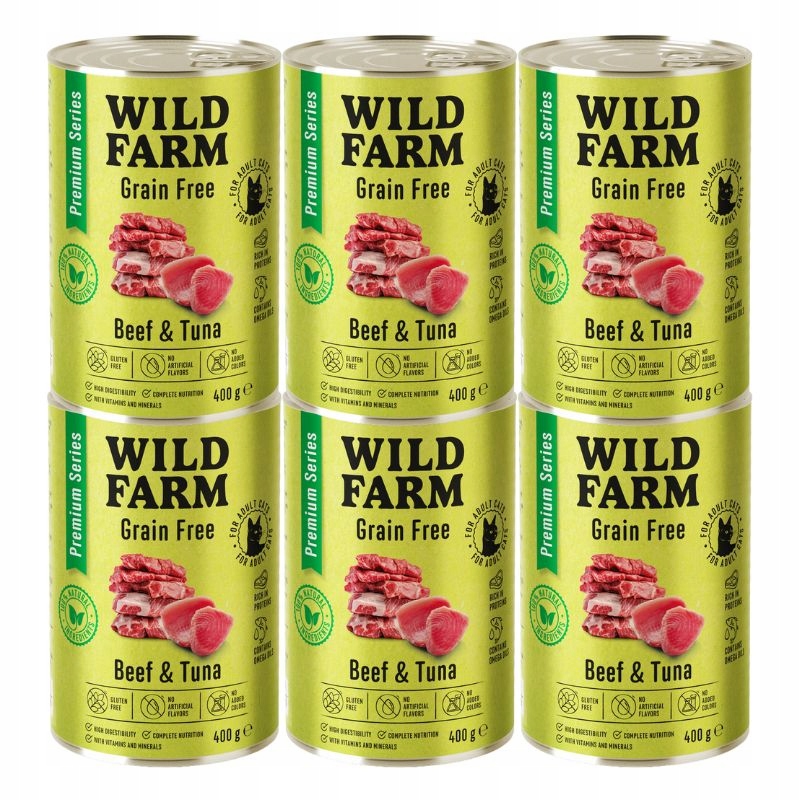 ✅ Wild Farm Beef & Tuna 400g – натуральний і смачний вологий корм преміум-класу, який поєднує в собі поживну цінність червоного м’яса та риби, підтримуючи здоров’я та денну енергію вашої кішки.