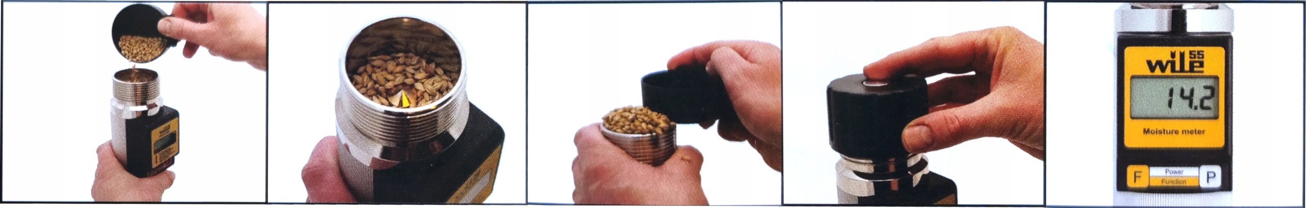 WILE 55 це пристрій для вимірювання вологості b> b> що дозволяє швидко й точно виміряти вміст води в 16 різних типах зерна, насіння та трави на основі електропровідності.