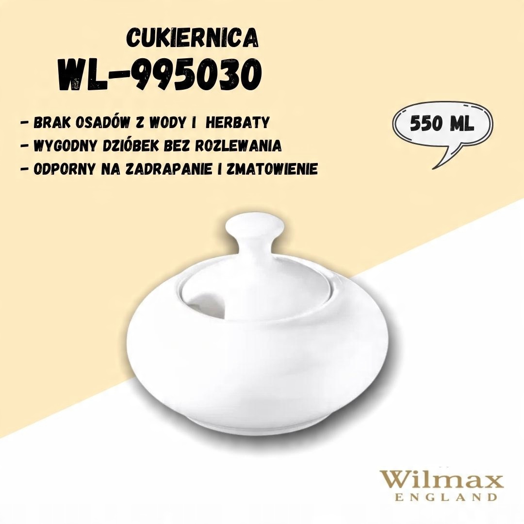 Цукорниця WILMAX. Біла кругла цукорниця з кришкою ідеально підходить для зберігання та подачі цукру на стіл під час чаювання.
