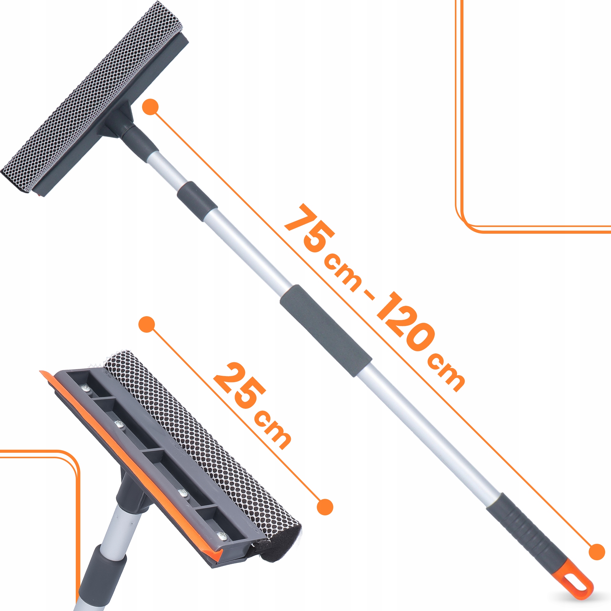 Ракель для миття скла 25 см з губкою та телескопічною ручкою 75 см - 120 см