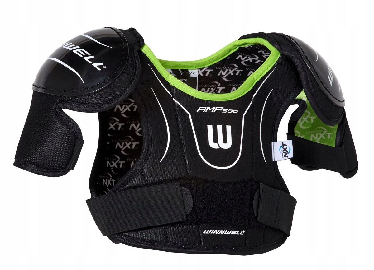 Протектор плечей забезпечить необхідний захист хокею на рівні якості аматорів. Біцепси захищають захисник анатомічної форми, розмір регулюється за допомогою широкого застібки на липучках. Грудна кістка захищена завдяки посиленому арматурі в області грудей. Озброєння розроблені таким чином, щоб не перешкоджати руху, використовуючи технологію Cleansport NXT, ця запатентована технологія може безпечно усунути запах з хокейного обладнання. Захисник був розроблений у простому чорному дизайні з чітко зеленими смужками. Опис: