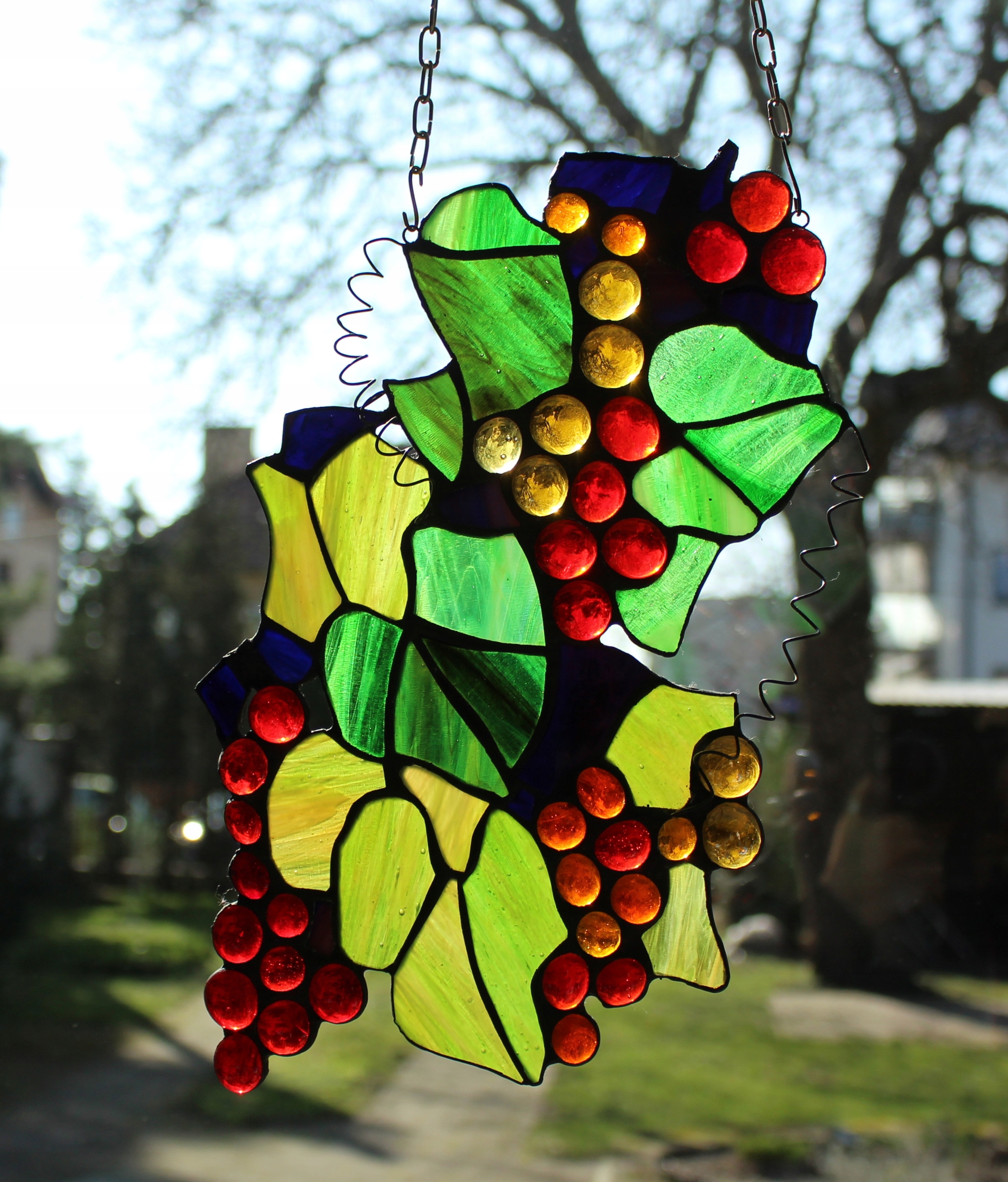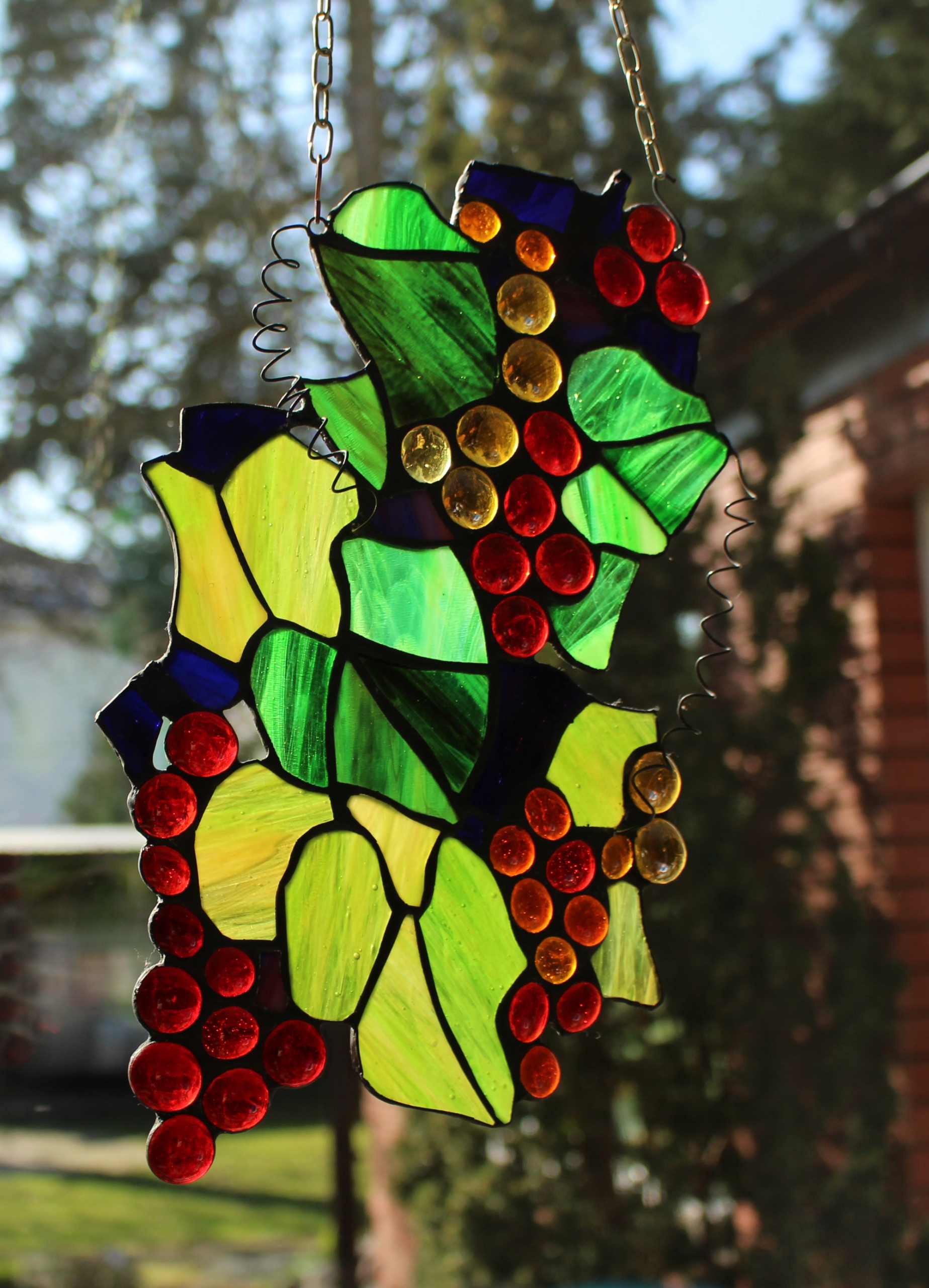 Winogrona witraż Tiffany, czerwone winogrona winobranie szklane winogrona 2