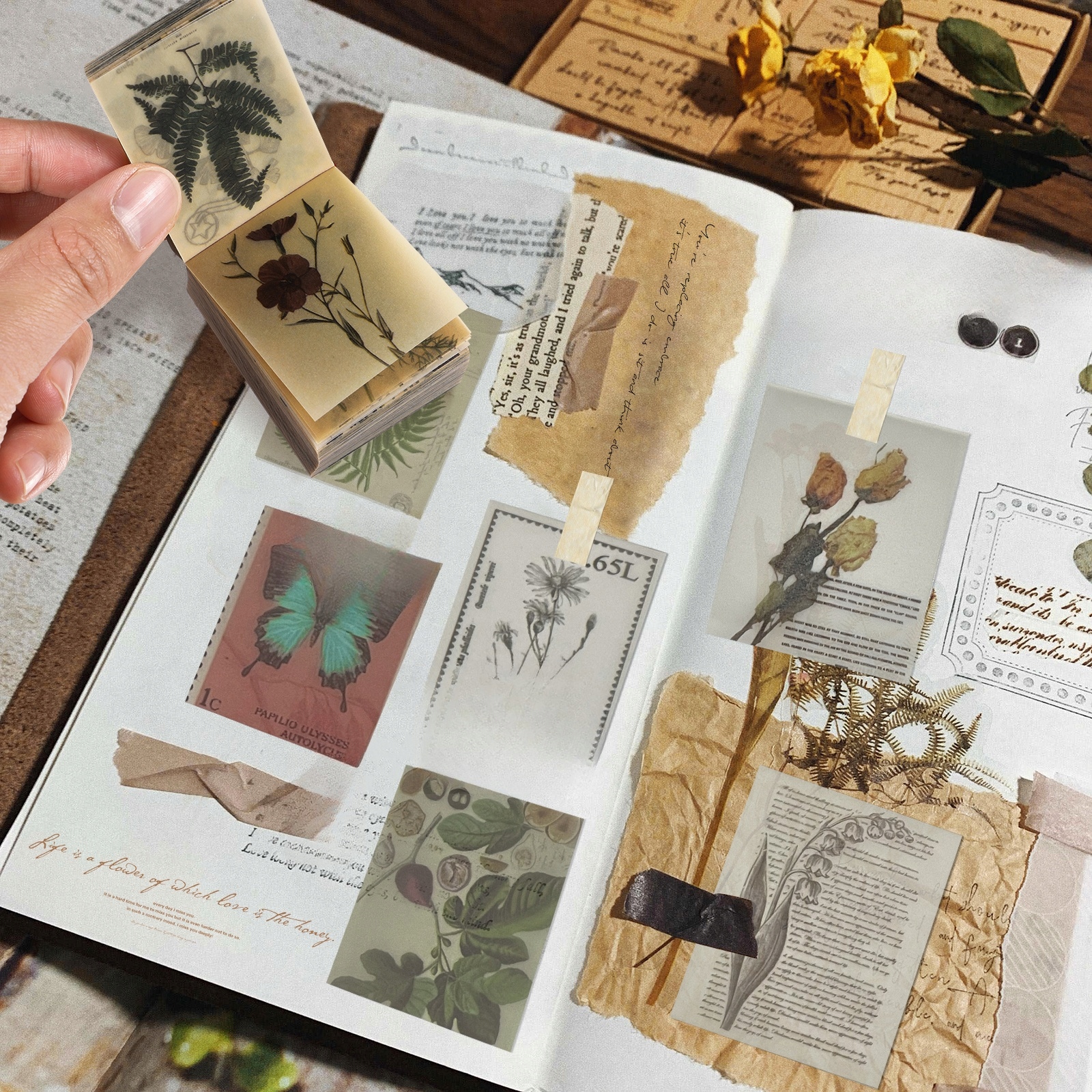 WINTAGE JOURNALING MATERIAŁ PAPIEROWY KSIĄŻKA ROŚLINNA RĘKA KONTO ZESZYT 5X4CM