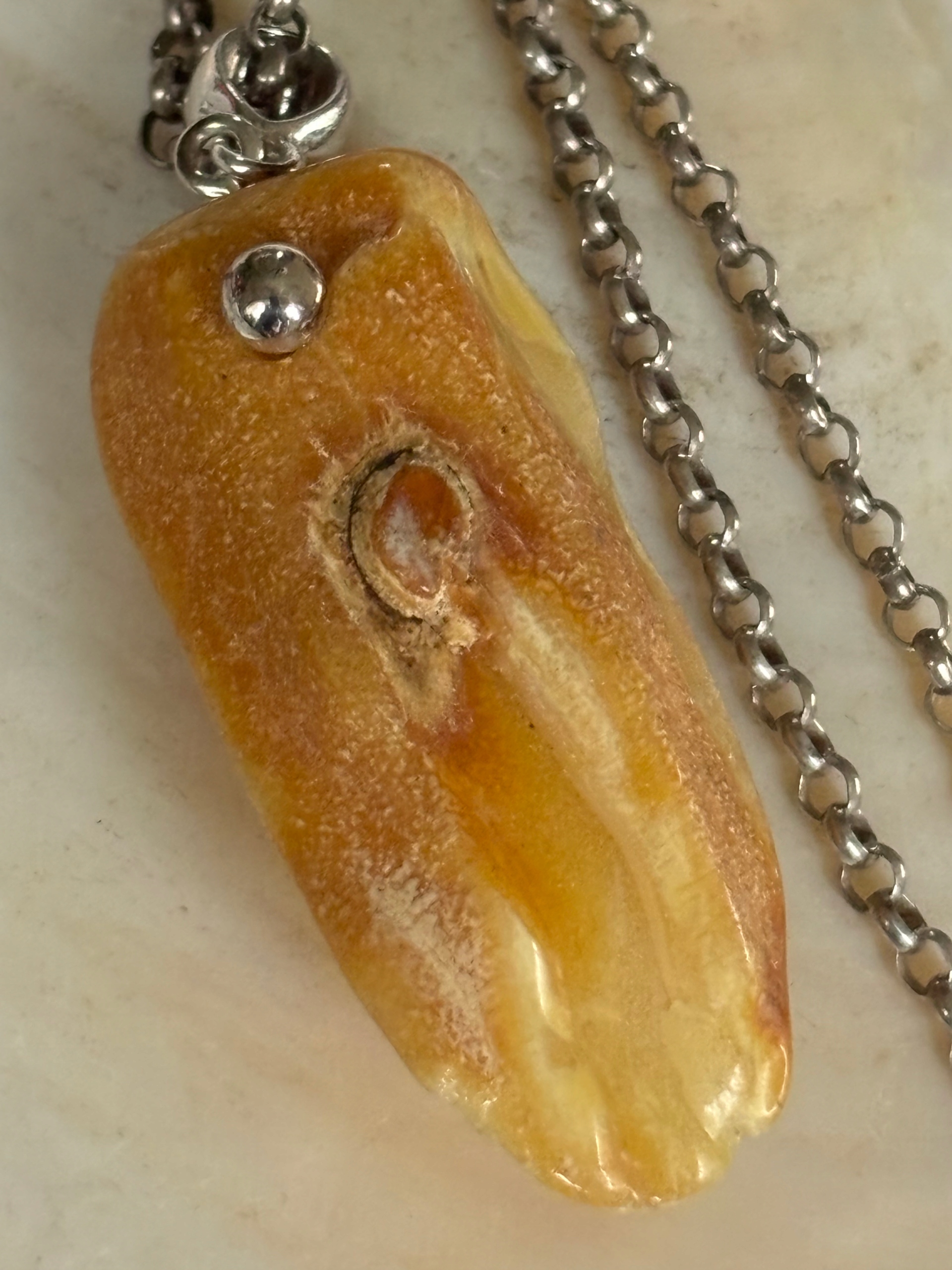 Wisior zawieszka stary srebrny kulka bursztyn mleczny naturalny