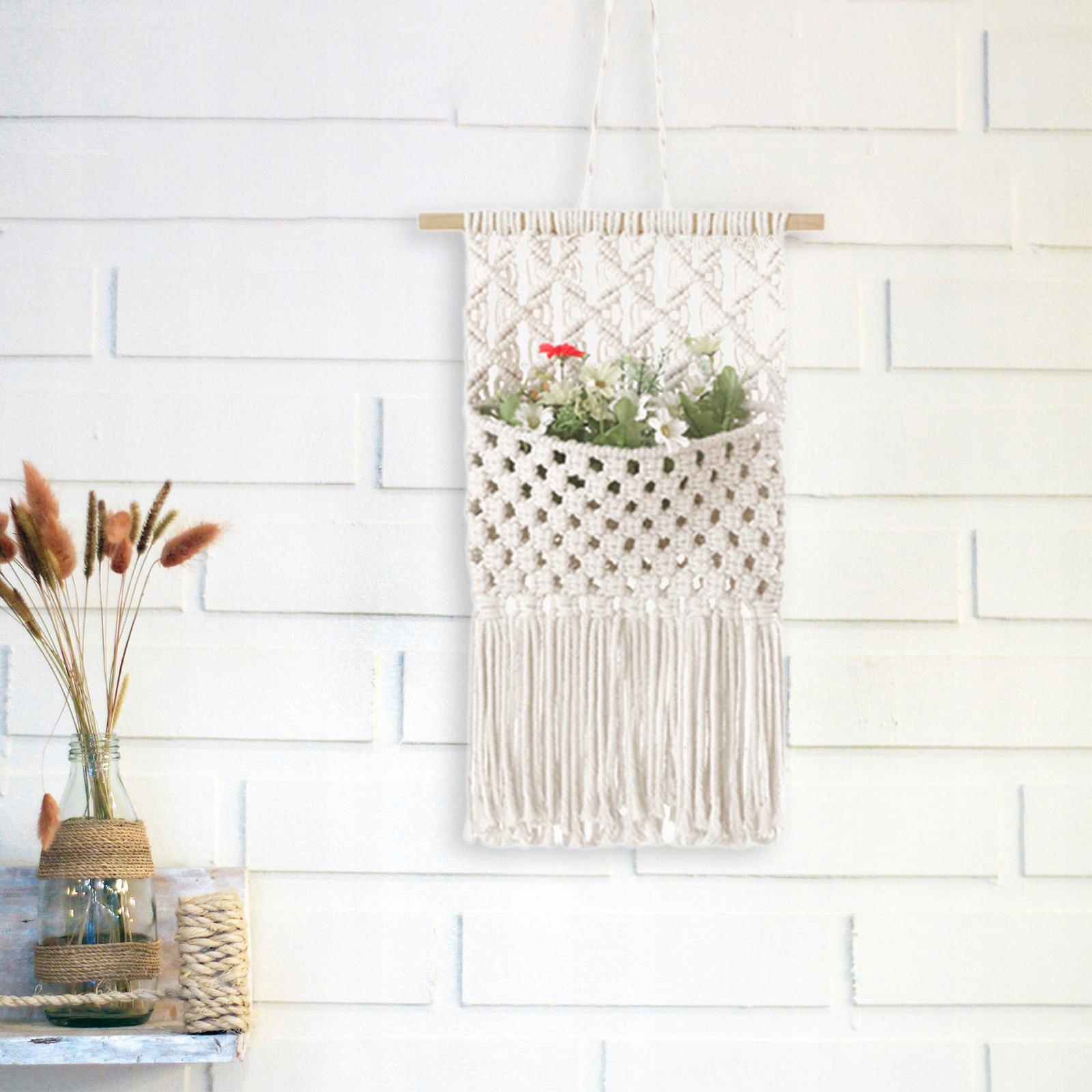 Wiszący wieszak ścienny makrama Boho do mieszkania 67 cm x 33 cm