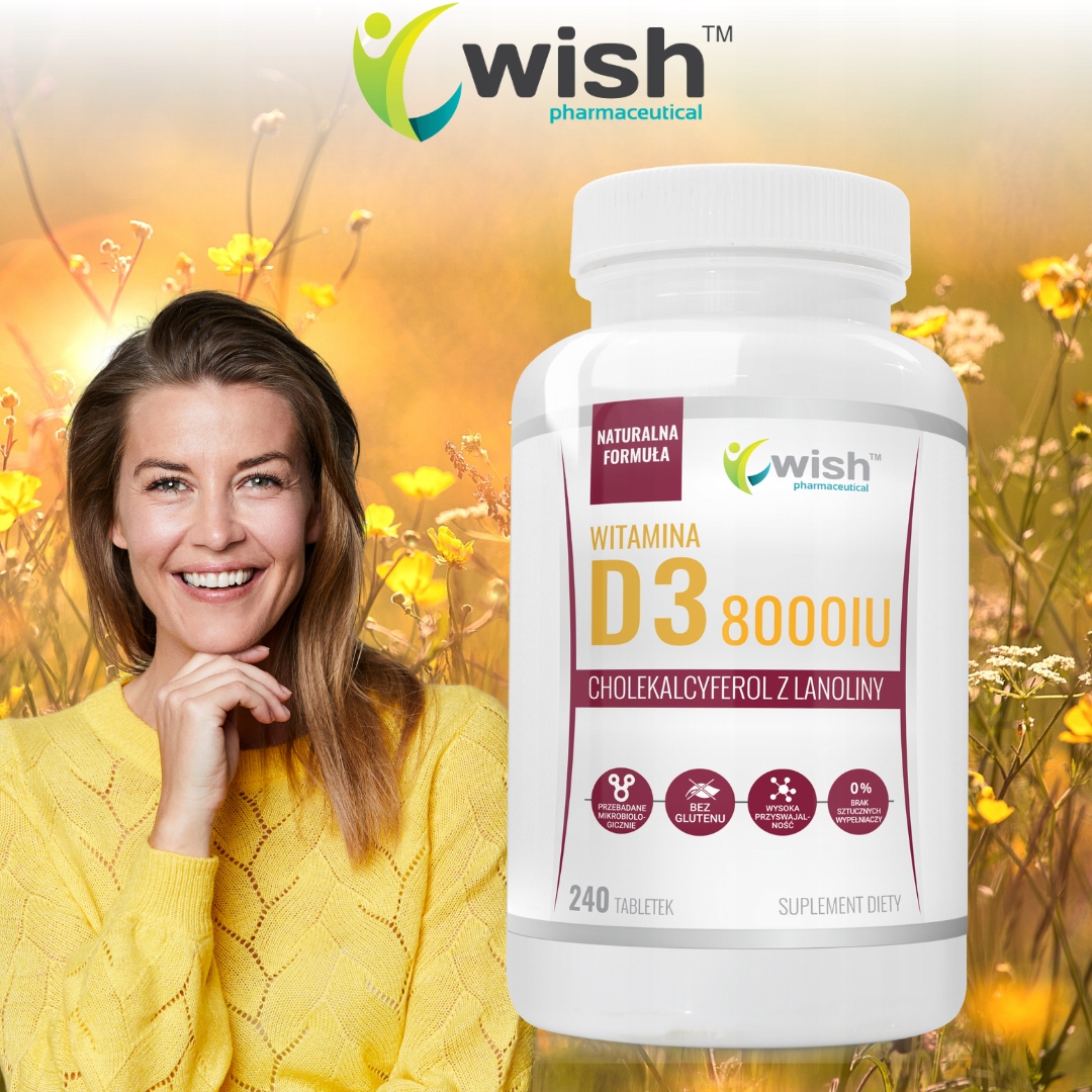 Witamina D3 8000 IU 240 tabletek Dobry NASTRÓJ Lepsza ODPORNOŚĆ Mocne KOŚCI