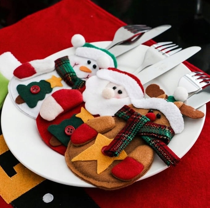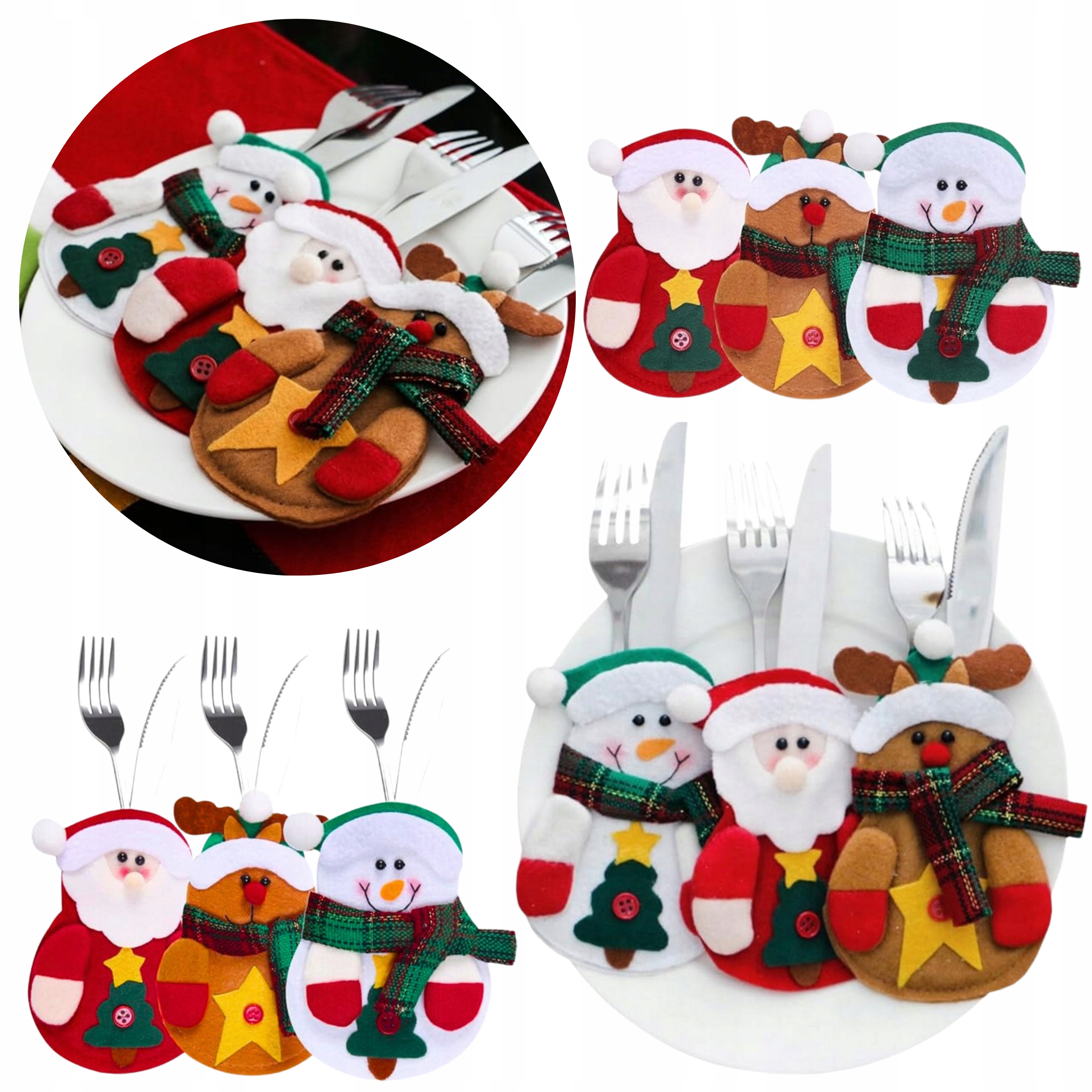 ŚWIĄTECZNE ETUI NA SZTUĆCE WIDELCE NOŻE POKROWIEC OZDOBY STÓŁ MIKOŁAJ