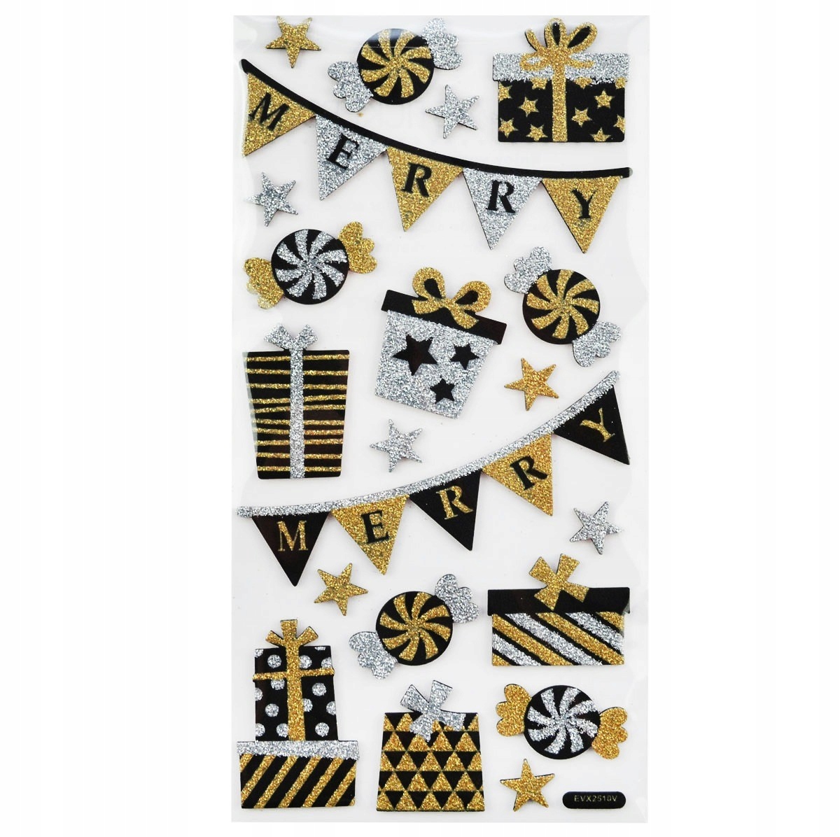 ŚWIĄTECZNE NAKLEJKI BROKATOWE CZARNE ZŁOTE MERRY