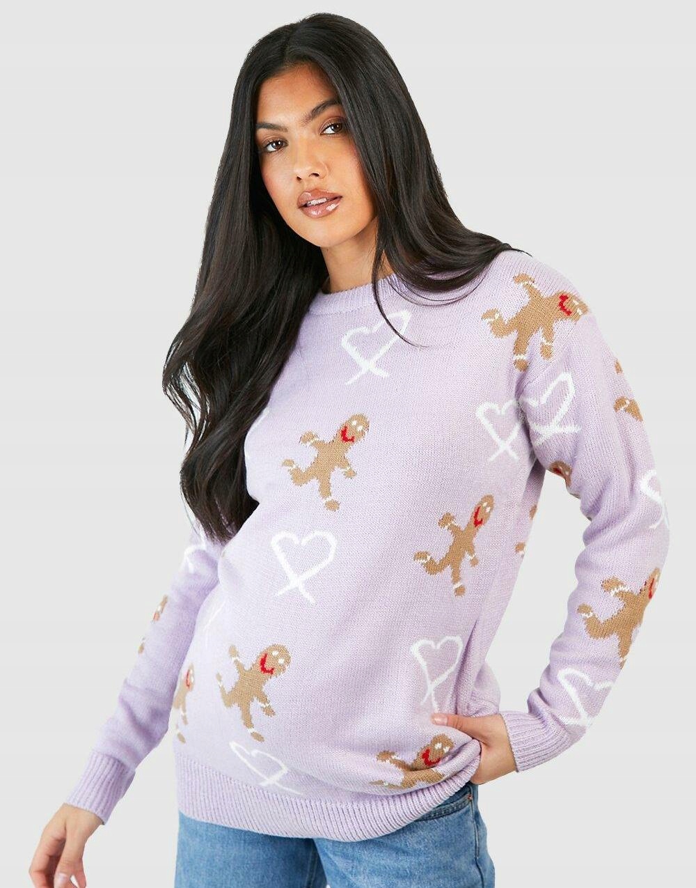 ŚWIĄTECZNY SERDUSZKA CIASTKA BOOHOO S KLASYCZNY FIOLETOWY SWETER CIĄŻOWY
