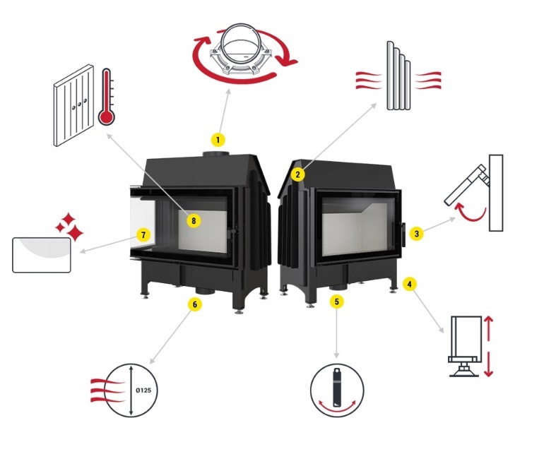 Вбудований повітрозабірник fi 125, який подає свіже повітря в піч ззовні будівлі, що сприяє кращому горінню.