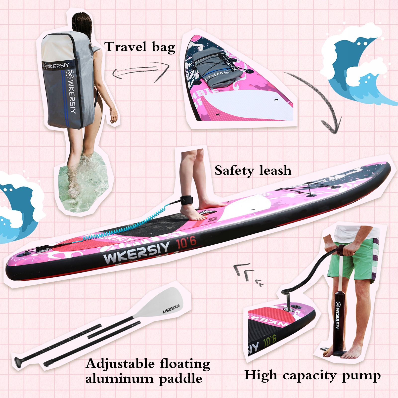 Сонна веслувальна дошка оснащена необхідними аксесуарами, включаючи регульований та плаваючий весло, серфінг, зів’ялий захисний повідок, насосний насос, окремо транспортуйте смужками на плечі.