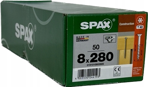 Wkręty uniwersalne do drewna 8 x 280mm SPAX WIROX BIT T-40 stożek 50szt