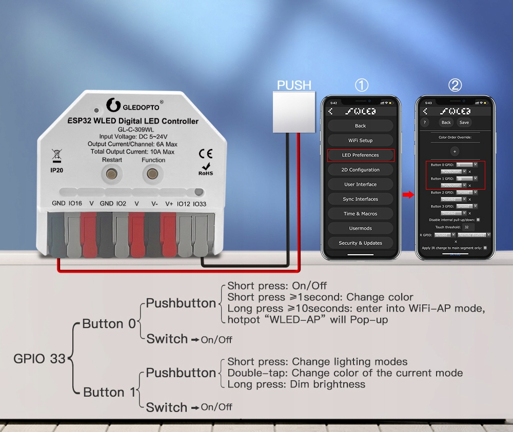 WLED Magic Pixel LED IC контролер цифровий WiFi ESP32 Home Assistant WS281x