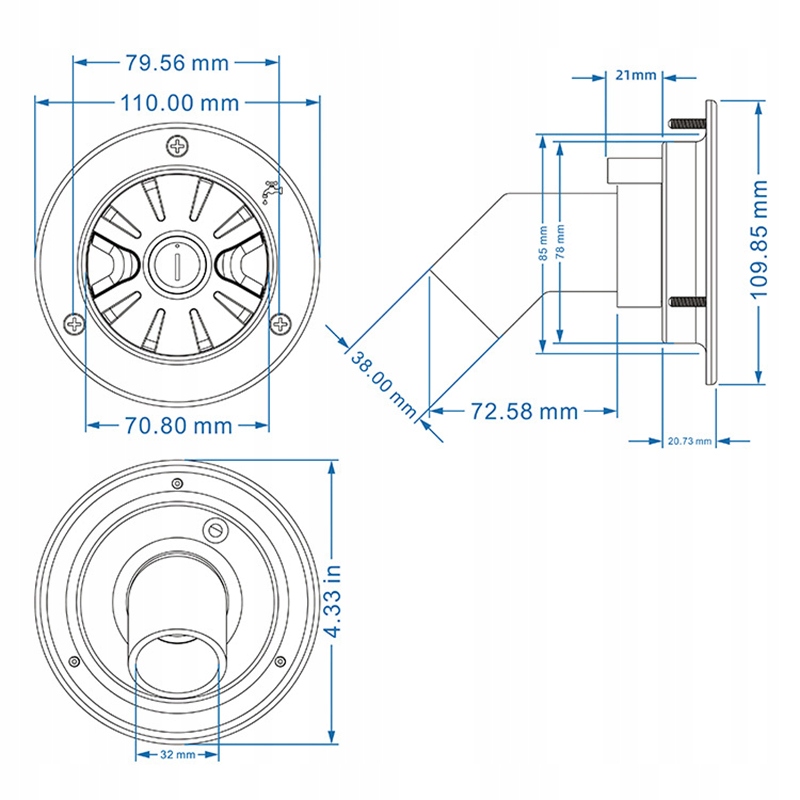 Набір кришки інжектора, розмір отвору: 80 мм і середній розмір вихлопної труби: 38 мм h p>