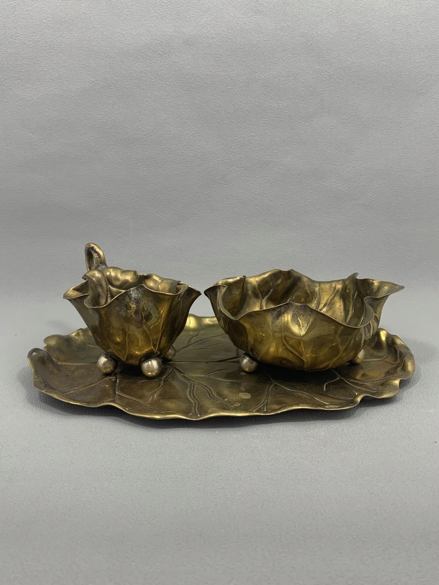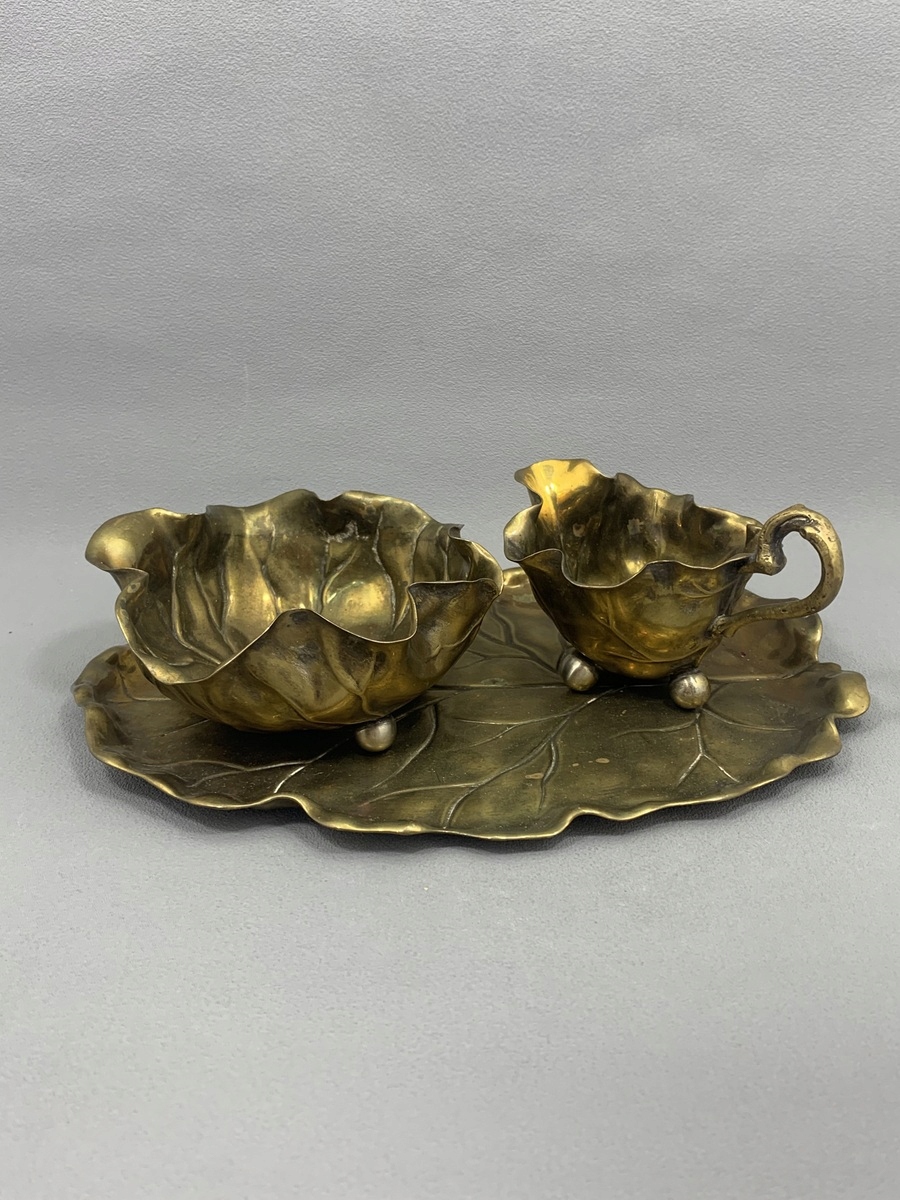 Ми рекомендуємо набір - цукорниця та молочник з тарілкою, виготовлені з латуні із залишками покриття WMF 1895-1910 років.