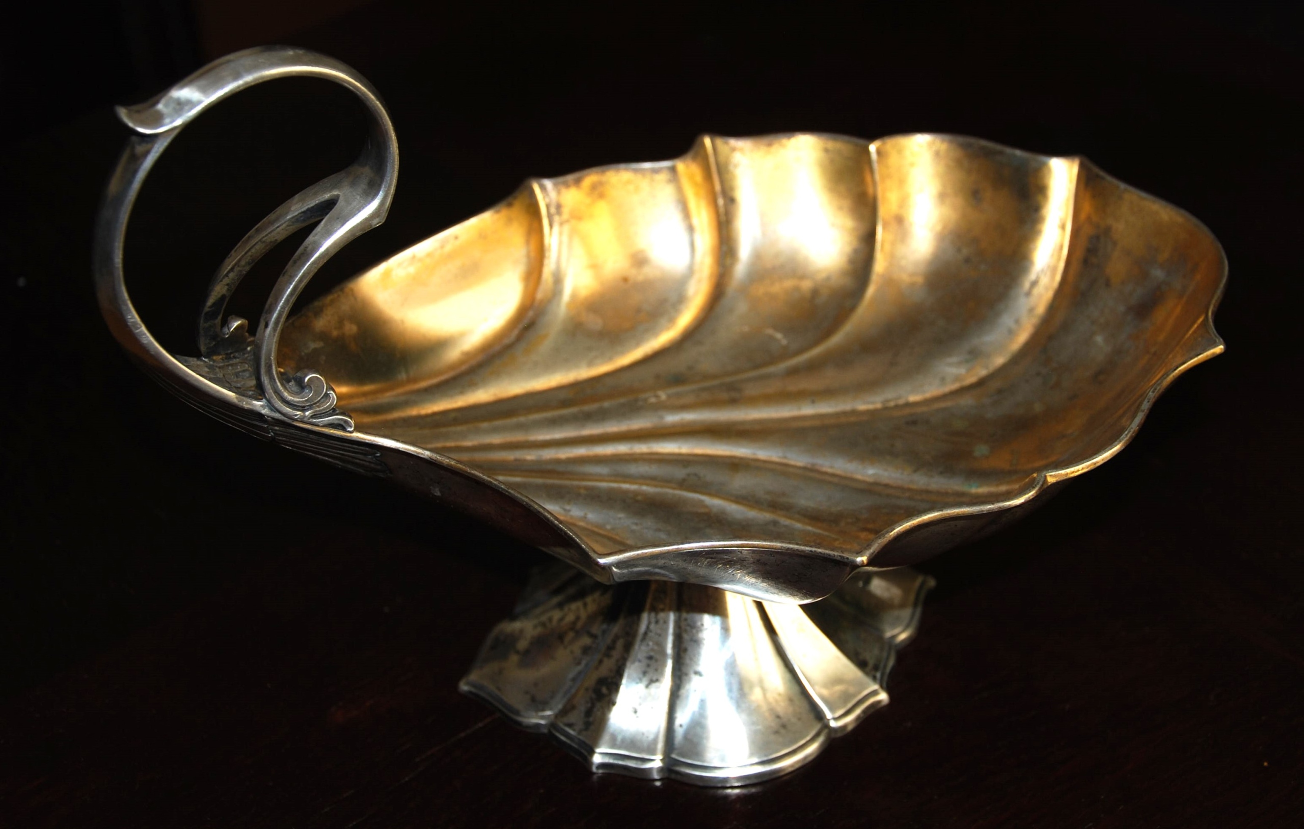Стан хороший, як на фото. стирання центру. Залишки позолоти всередині. довжина - 28 см, ширина - 20 см, висота - 21 см. Сріблення поза центром, без потертостей.