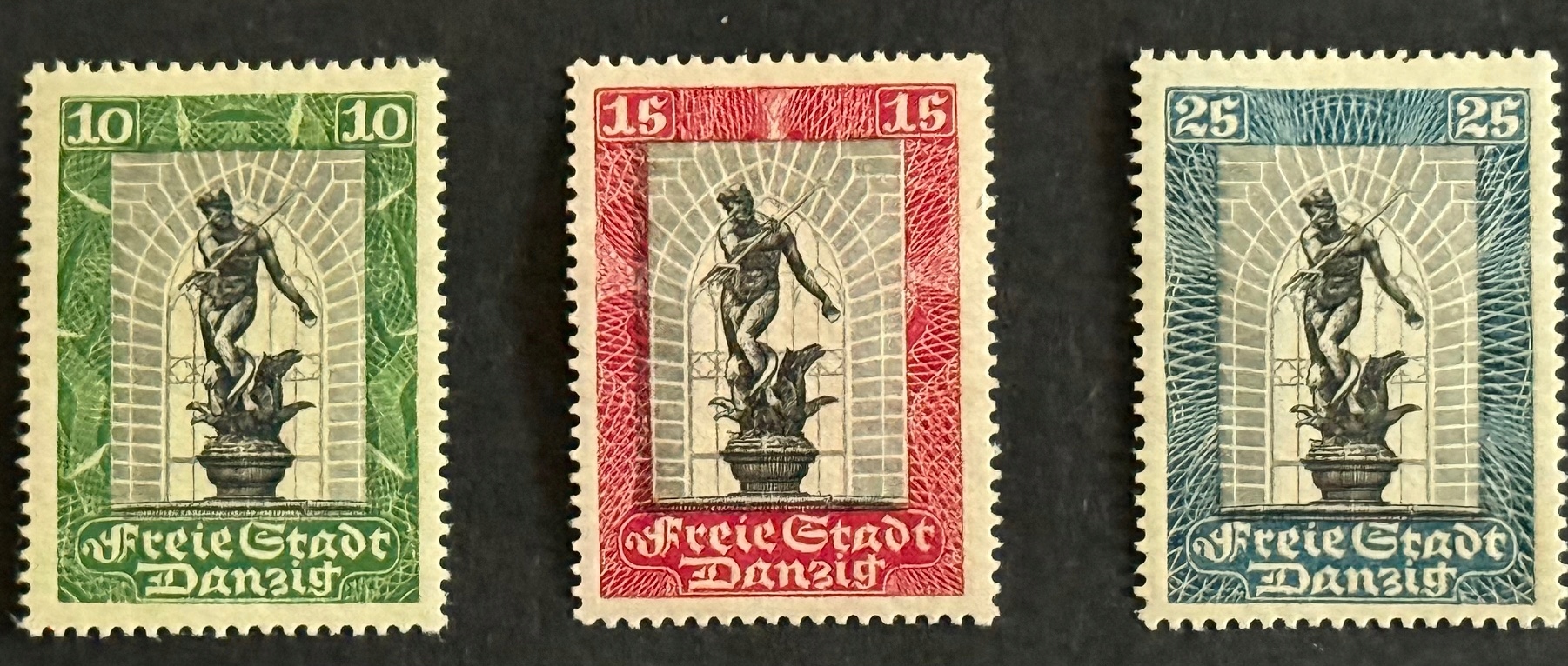 WONE MIASTO GDAŃSK -DANZIG - FI 211-213 **, ІДЕАЛЬНИЙ СТАН, ПОВНІСТЮ ОРИГІНАЛЬНА ГУМА, ПОВНА РІВНА ПЕРФОРАЦІЯ, ГАРНЕ ЦЕНТРУВАННЯ, ЯРЧІ КОЛЬОРИ