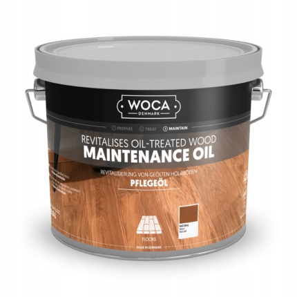 Woca Maintenance Oil призначена для промаслених дерев'яних підлог, як масивних, так і багатошарових. Олія для догляду рекомендована як для типово темних порід деревини (мербау, тик, вишня, дуб тощо), так і для світлих вилужених або промаслених порід деревини (сосна, ялина, ясен, бук, дуб, гевея тощо). Масло Woca Maintenance Oil, натуральне або біле, також можна використовувати для початкового догляду в будівлях з особливо навантаженими підлогами та для фінішного полірування підлог, змащених заводським маслом.