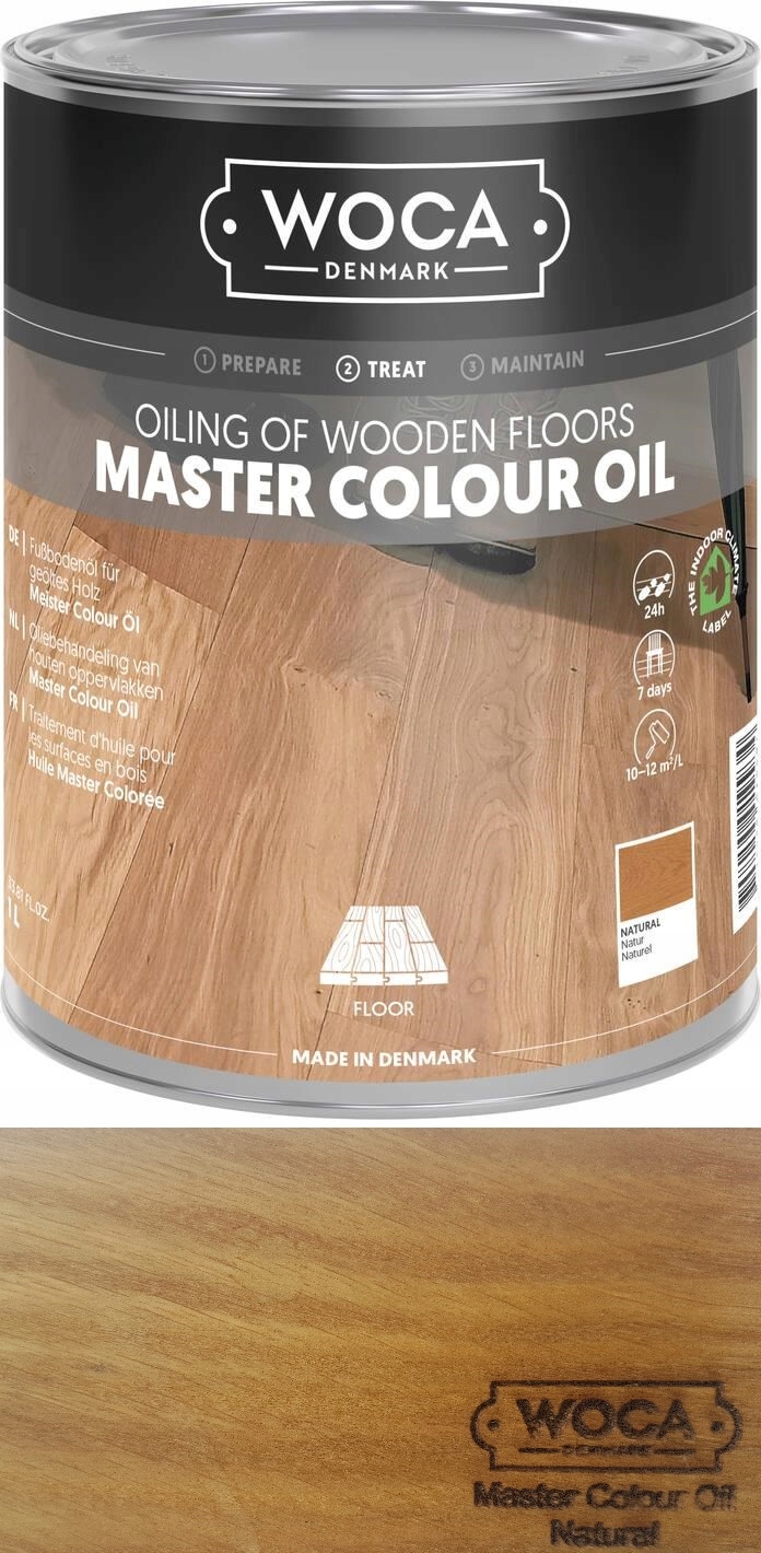 Master Oil проникає в пори деревини і твердне там, захищаючи її зсередини. Це створює дуже міцну та просту у догляді поверхню. Натуральна олія дуже глибоко підкреслює структуру деревини, а використання білої олії дозволяє надовго зберегти властивості світлої деревини. Контейнери виготовлені з поліетилену та мають закриту кришку від дітей. На зворотному боці контейнера є докладна інструкція. Масло Master слід зберігати в прохолодному, захищеному від замерзання місці під замком. Берегти від сонячних променів. Натуральне масло можна наносити безпосередньо, тоді як біле масло слід ретельно перемішати.