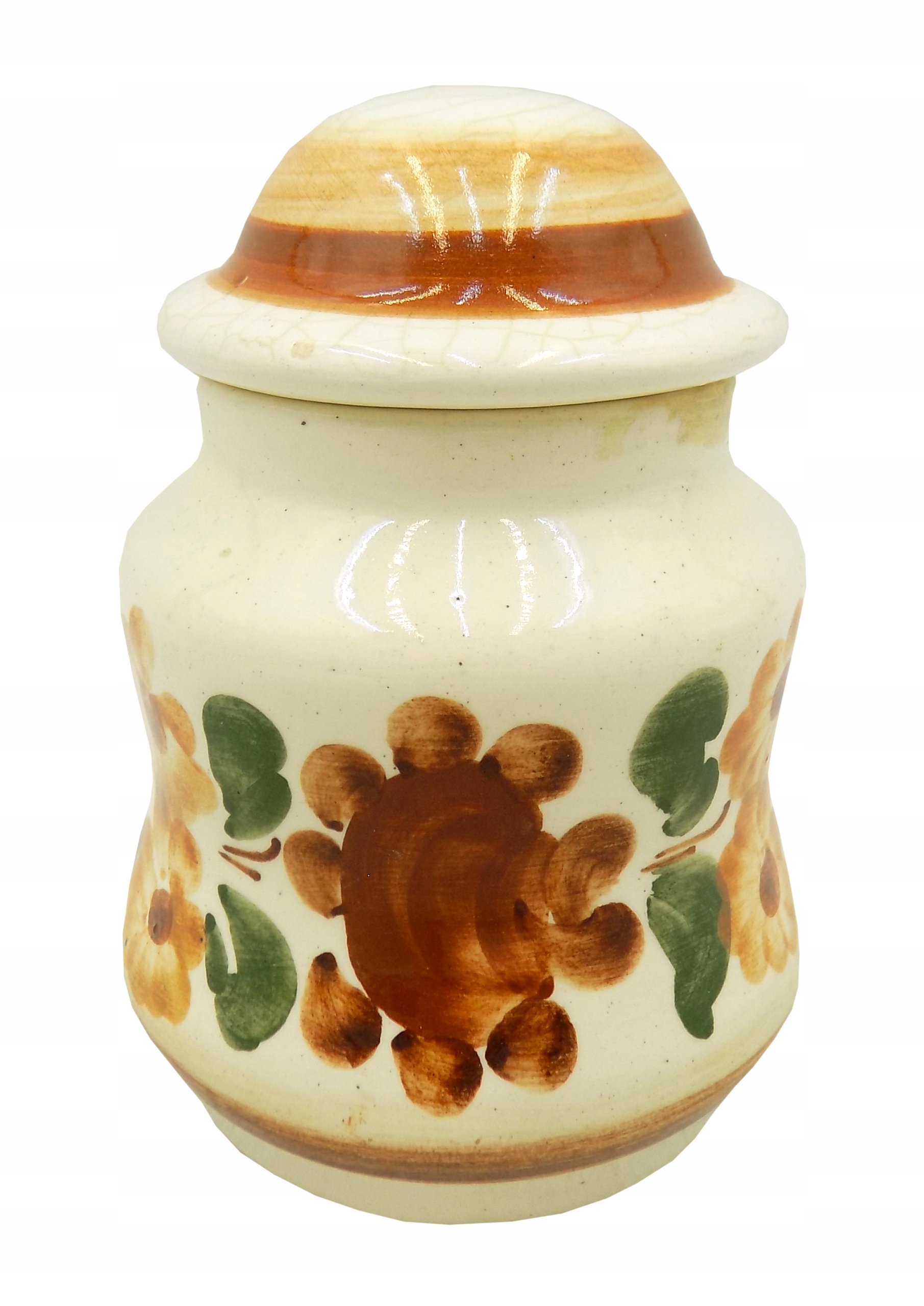 Фаянсова банка з Влоцлавека 1970-1980-х років. Підписано. Ручний розпис. Візерунок 1535/3. Розміри; висота 12 х 8,5 см. Товар після ремонту. Стан та місце ремонту товару показано на фото.