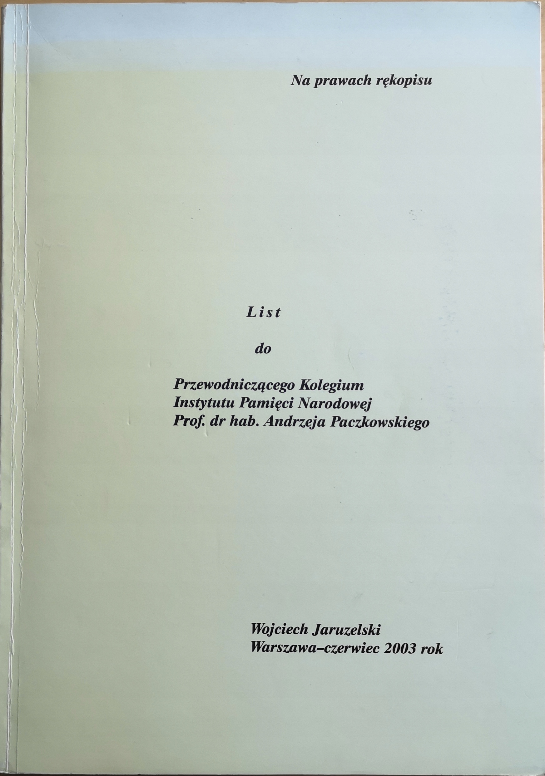 Wojciech Jaruzelski. List do Przewodniczącego IPN-u. Dedykacja. Autograf !