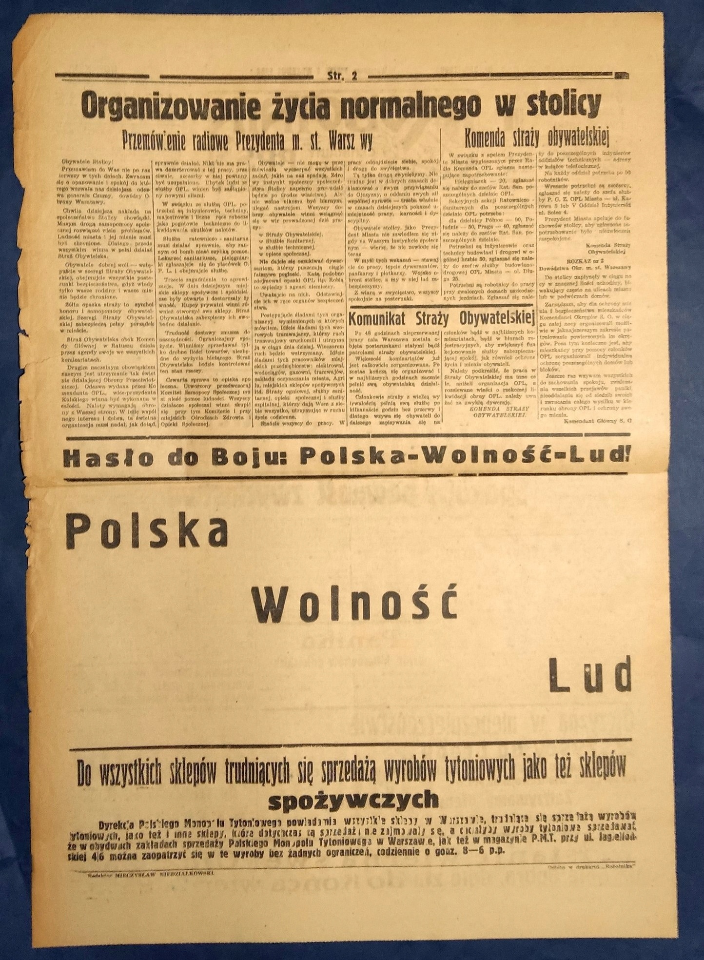WOJNA - Oryginalna gazeta ROBOTNIK 8 XI. 1939