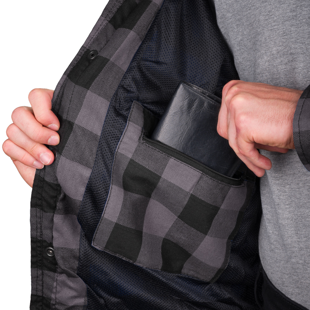 Наша сорочка оснащена набором сертифікованих захисників, які розміщуються легко доступними кишенями - завдяки якому їх можна легко замінити на кращі захисники класу (хоча значна частина наших клієнтів хвалить цю можливість за те, що вона може швидко змінити сорочку на щоденну, комфортну та стильну елемент одягу).