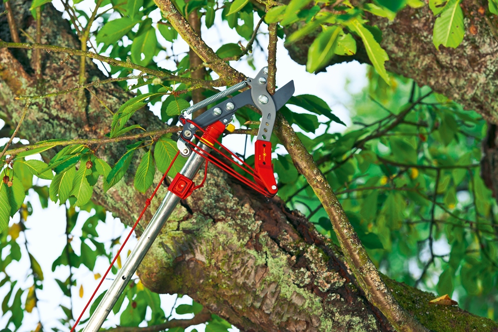 Унікальний принцип конструкції та вільно регульований робочий кут професійного секатора для дерев RC-VM multi-star® дозволяють зрізати гілки, що ростуть у будь-якому напрямку. Підвіска на дерево, що забезпечує невтомну роботу, також можлива завдяки можливості регулювання кута нахилу на 180°. Техніка різання ковадла і 4-ступінчастий ланцюговий механізм гарантують легке зрізання високих гілок діаметром до 40 мм і забезпечують виснажливу роботу з невеликими зусиллями. Точні шліфовані леза, вкриті антиадгезійним покриттям, ріжуть чисто й точно навіть після тисячі надрізів. Використовуючи ручки Vario від WOLF-Garten, можна доглядати за деревами на висоті до 5,70 м від безпечного рівня землі.
