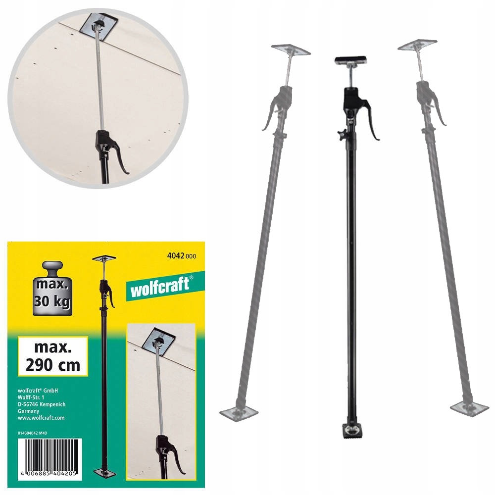 - Висувна телескопічна штанга та насосний механізм для точного регулювання довжини дозволяють легко та безпечно фіксувати дошки вагою до 30 кг.