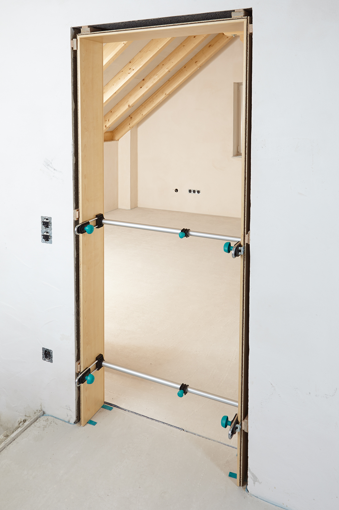 - допомагає утримувати дверну коробку в правильному положенні під час спінювання та забезпечує паралельне розташування обох бічних елементів дверної коробки відносно один одного