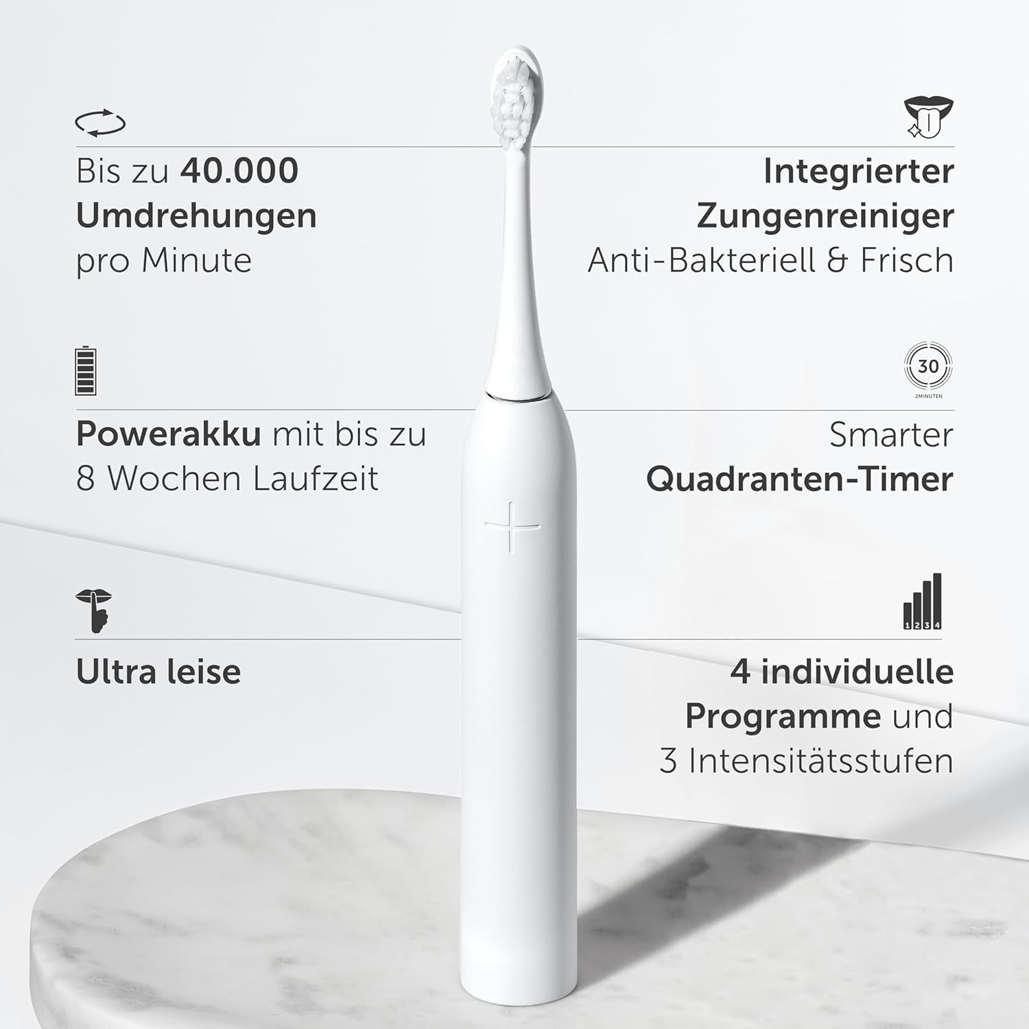 - 40 000 об / хв - наша головка пензля рухається зі швидкістю до 40 000 вібрацій на хвилину. Знебарвлення, родовища та нальоту видаляються обережно та ефективно.