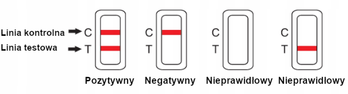 Якщо в контрольній зоні з’являється лише одна кольорова смуга (C ), і в тестовій зоні не з’являється кольорова смуга, результат є негативним. Це означає, що концентрація стрептококового антигену групи А дорівнює нулю або нижча за межу виявлення тесту.