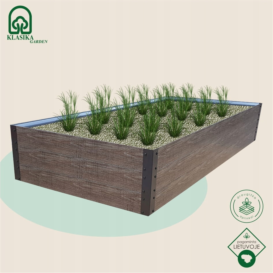 Овоч Woodlook - це надзвичайно довговічна, естетична та якісна розбірна клумба з грунтозацепами. Виготовлений з матеріалу GPPS. Цей матеріал на 100% підлягає переробці. Цей продукт складається з 2 основних компонентів - GPPS і HIPS. Фольга виробу виготовлена з ПЕТ - одного з найбільш екологічно чистих видів пластику, який можна багаторазово переробляти. У структуру ліжка для забезпечення міцності входять опорні ніжки, які вбиваються в землю, завдяки чому воно залишається стійким і зберігає форму. Поверхня виробу покрита УФ-стабілізатором, що робить його придатним для використання поза приміщенням за будь-яких погодних умов.