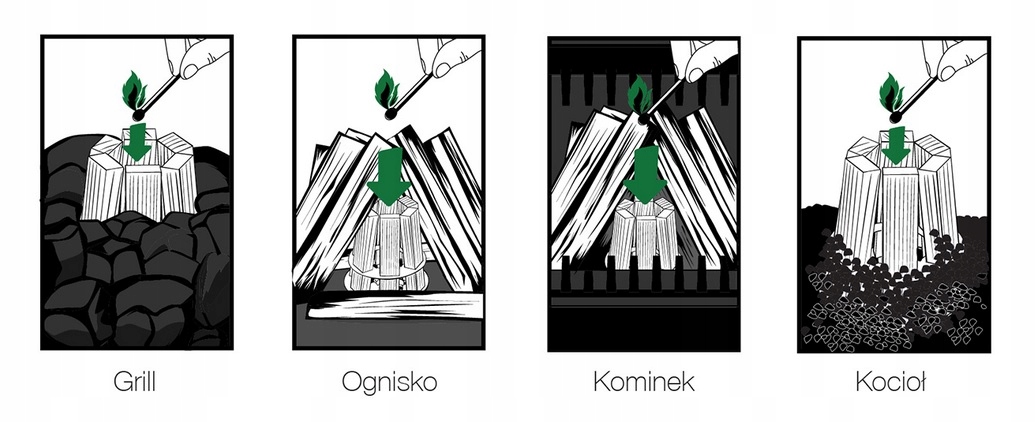 Екологічне розпалювання, яке не містить шкідливих речовин. Ідеально підходить для простого, швидкого та безпечного розпалювання багаття.