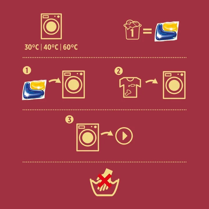 Унікальна формула гелевих капсул забезпечує захист від вицвітання та допомагає зберегти інтенсивність кольорів ⭐ Більше жодного неправильного дозування - проста у використанні капсула просто потребує помістити в барабан пральної машини.