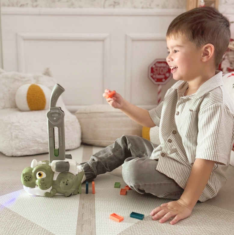 Colorful Dinosaur Domino від бренду WOOPIE — це гра, яка поєднує в собі іграшкові потяги та доміно, створюючи цікаву та оригінальну гру. Звук і освітлення роблять гру веселішою та привабливішою та стимулюють інтерес дітей до гри. Щоб розпочати гру, просто наповніть потяг дозатором цеглинок, почніть грати та насолоджуйтесь процесом. Крім того, потяг супроводжується характерними звуками та підсвічуванням, що додає грі ще більше динаміки.
