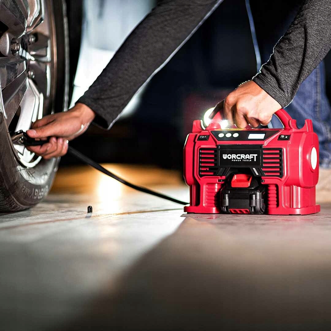Акумуляторний компресор CAC-S20LiA від Worcraft використовується для накачування коліс автомобіля чи велосипеда, а також футбольних м’ячів та інших предметів, які потребують швидкого та ефективного накачування.