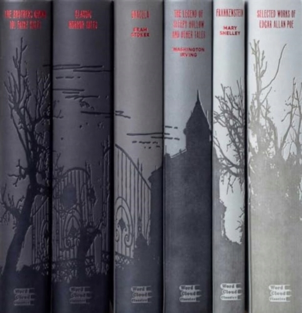 Ці шість томів класичних історій від майстрів жахливого ідеально підходять для похмурого й моторошного читання. Ця колекція похмурих і нав’язливих історій є важливим доповненням до книжкової полиці кожного, хто любить класичну літературу та казки жахів. Шість томів цього штучного комплекту включають оповідання таких шановних авторів, як Натаніель Готорн, Едіт Вортон і Х. П. Лавкрафт; моторошні твори Едгара Аллана По та Вашингтона Ірвінга; романи «Дракула» і «Франкенштейн»; і більше 100 пам'ятних казок братів Грімм. Незалежно від того, чи потрібно вам кілька історій, щоб розповісти біля вогнища, чи довше почитати вдома холодної зимової ночі, ви знайдете те, що вам потрібно, у цій спеціально розробленій колекції Word Cloud. Цей набір включає такі назви: Класика Horror Tales (вибрані оповідання)Дракула, Брем СтокерБрати Грімм: 101 казка Вибрані твори Едгара Аллана ПоФранкенштейна, Мері ШелліЛегенда про Сонну Лощину та інші історії, Вашингтон Ірвінг