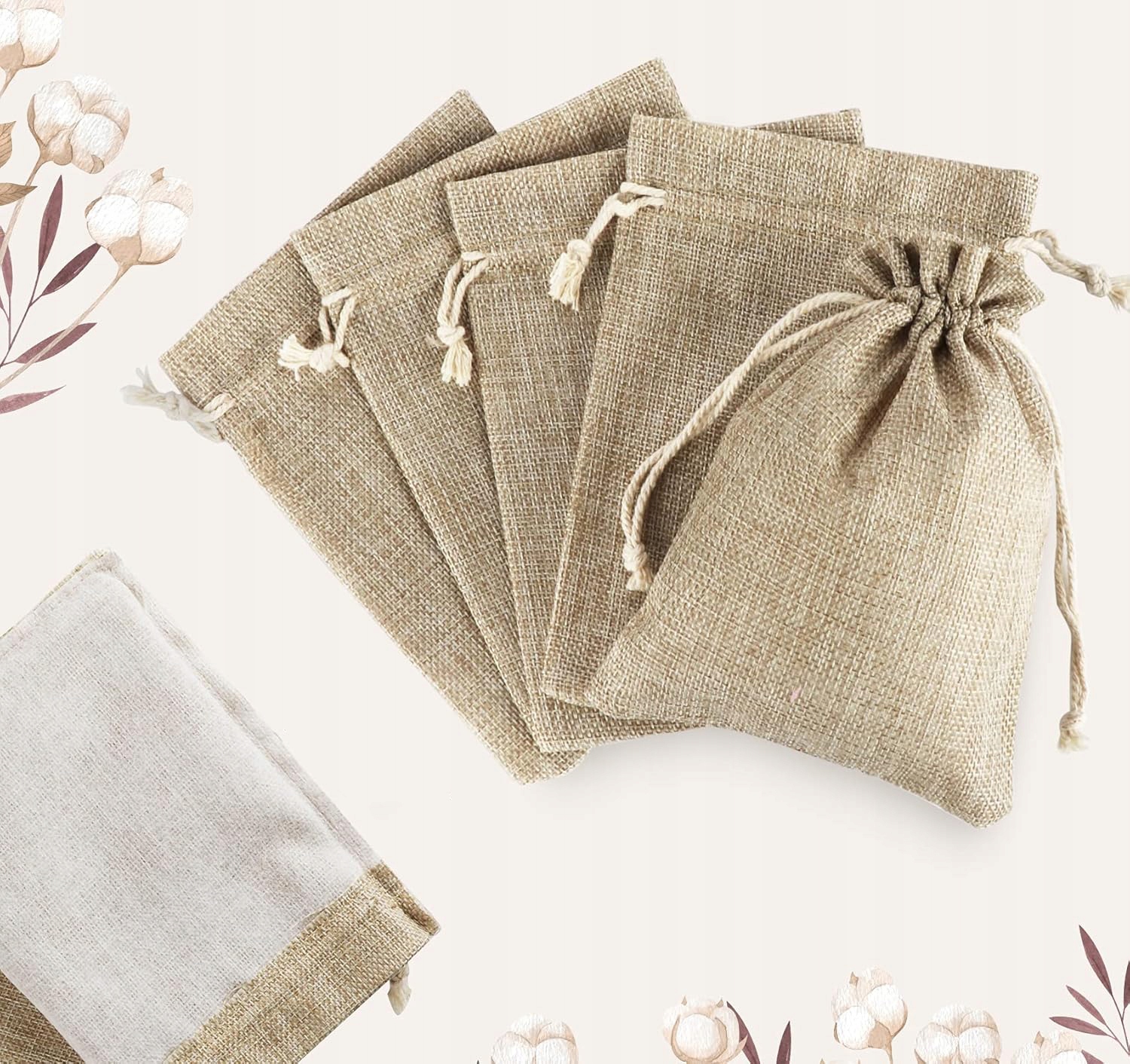 WORECZKI LNIANE ZE SZNURKIEM JUTOWE NA ZIOŁA PREZENT Z JUTY 9x12cm 50 szt