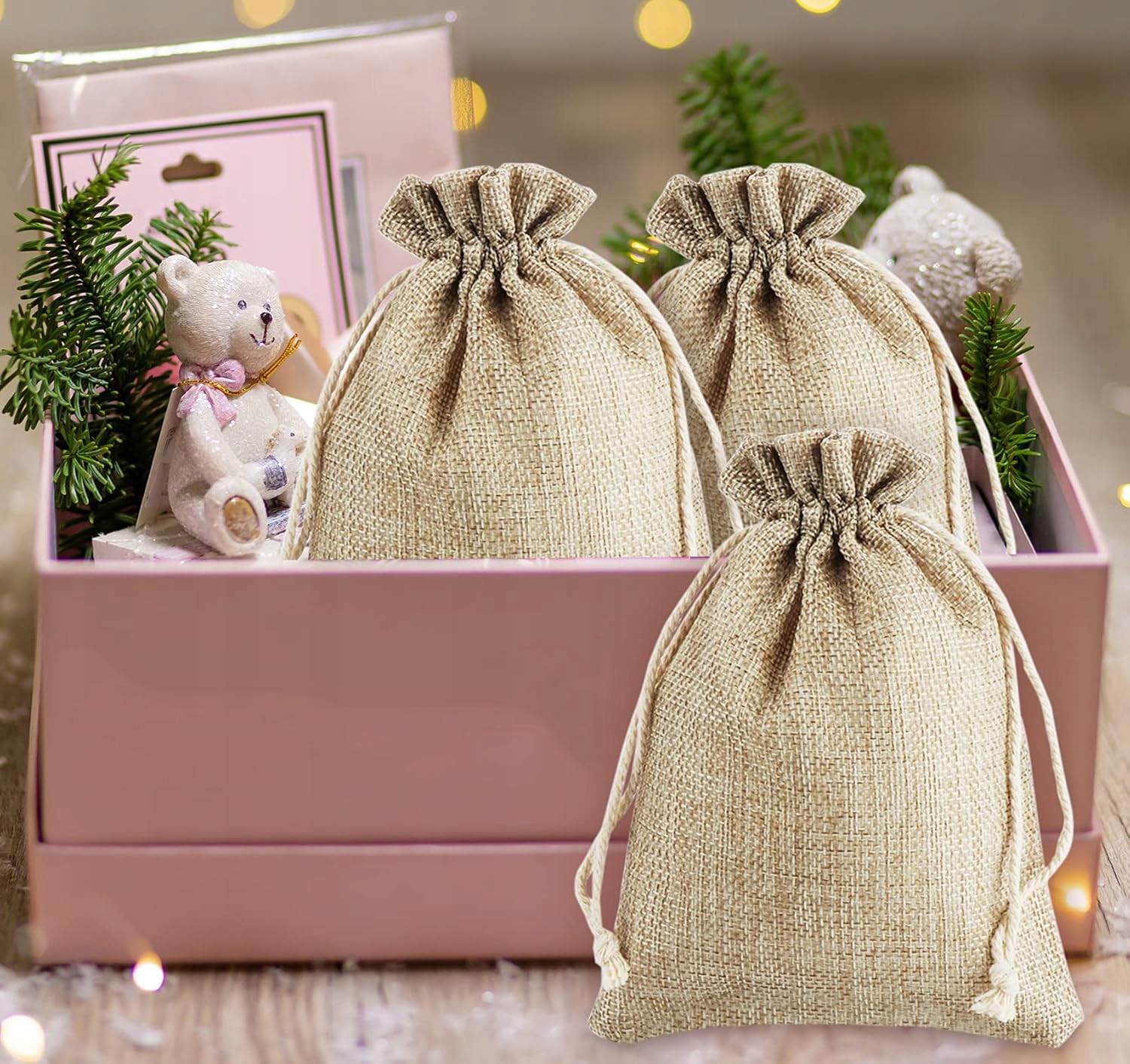 - Джутові пакети зі шнурком можна використовувати лише для свят, весіль, упаковки подарунків, різдвяних подарункових пакетів тощо.