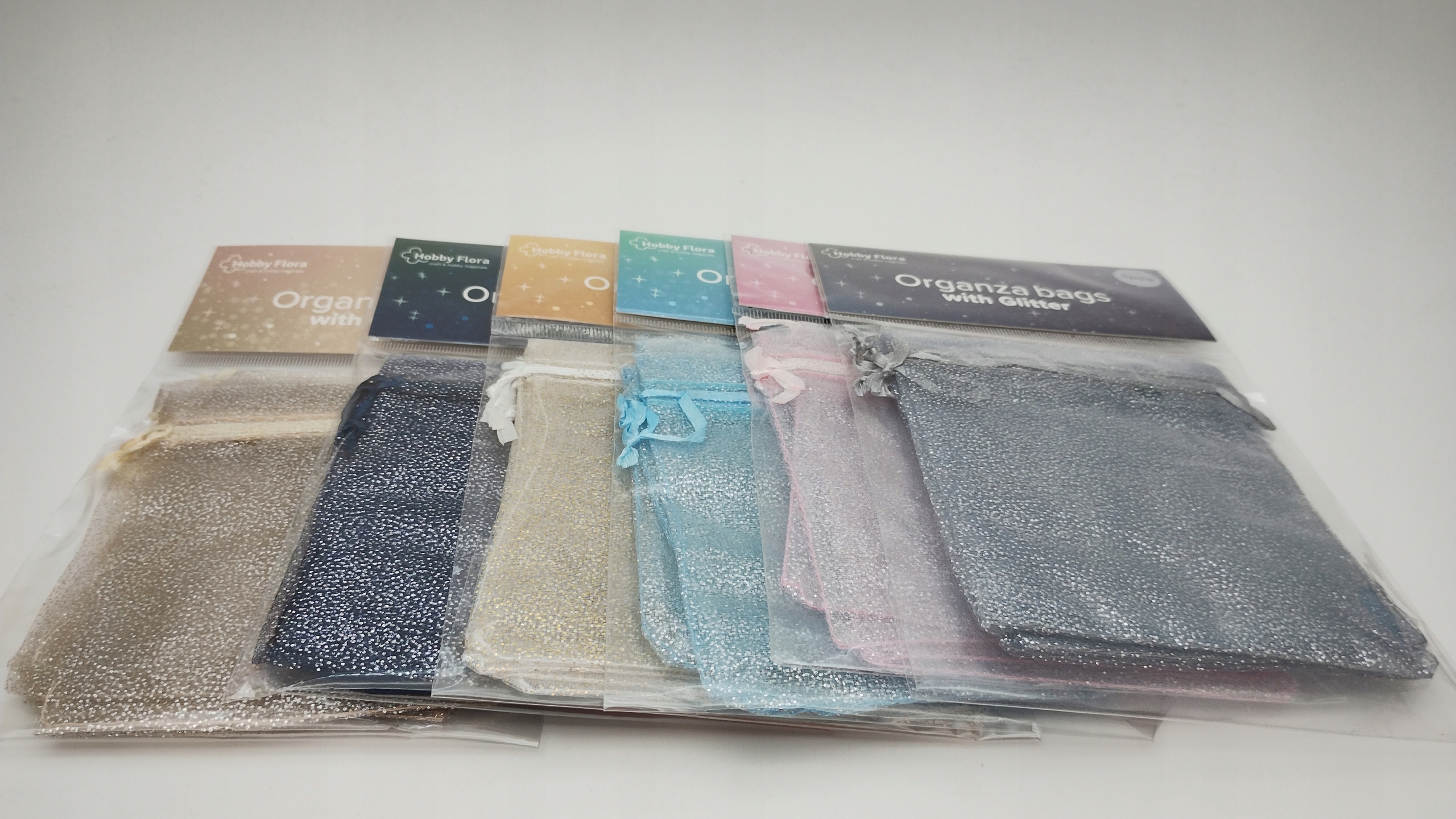 Woreczki z organzy Hobby Flora Organza Brokat brokatowe Błękitne 5 szt. set