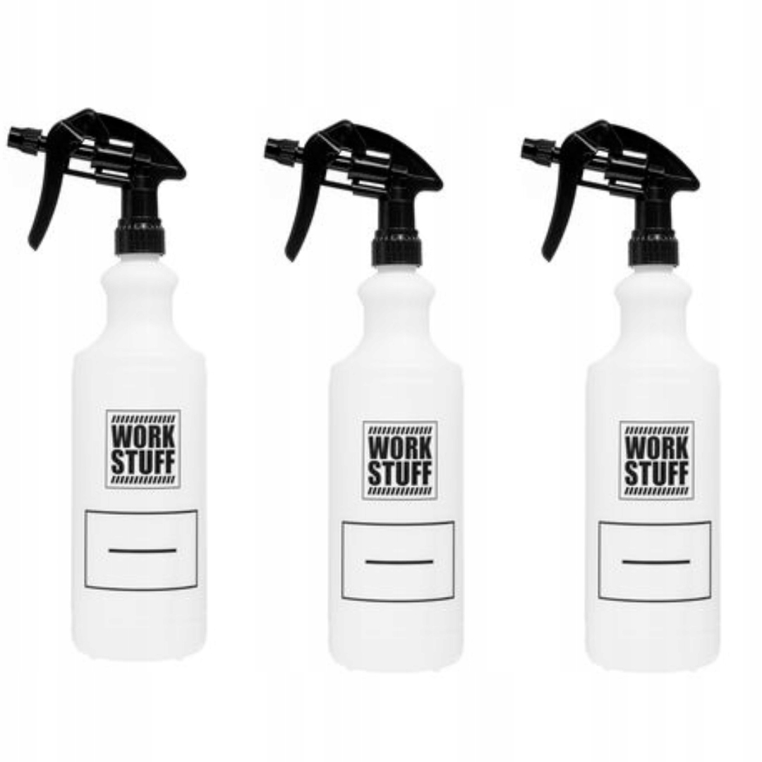 Work Stuff Work Bottle 1L + Trigger -Робоча пляшка для розливання та змішування/розведення хімічних речовин для деталізації. Він має спеціальне місце для опису продукту в пляшці та надруковану мірну чашку. У набір входить фірмовий тригер "CANYON". Продукт доступний в ємностях 750 мл і 1 л. Один із основних продуктів для кожного майстра та ентузіаста деталей.