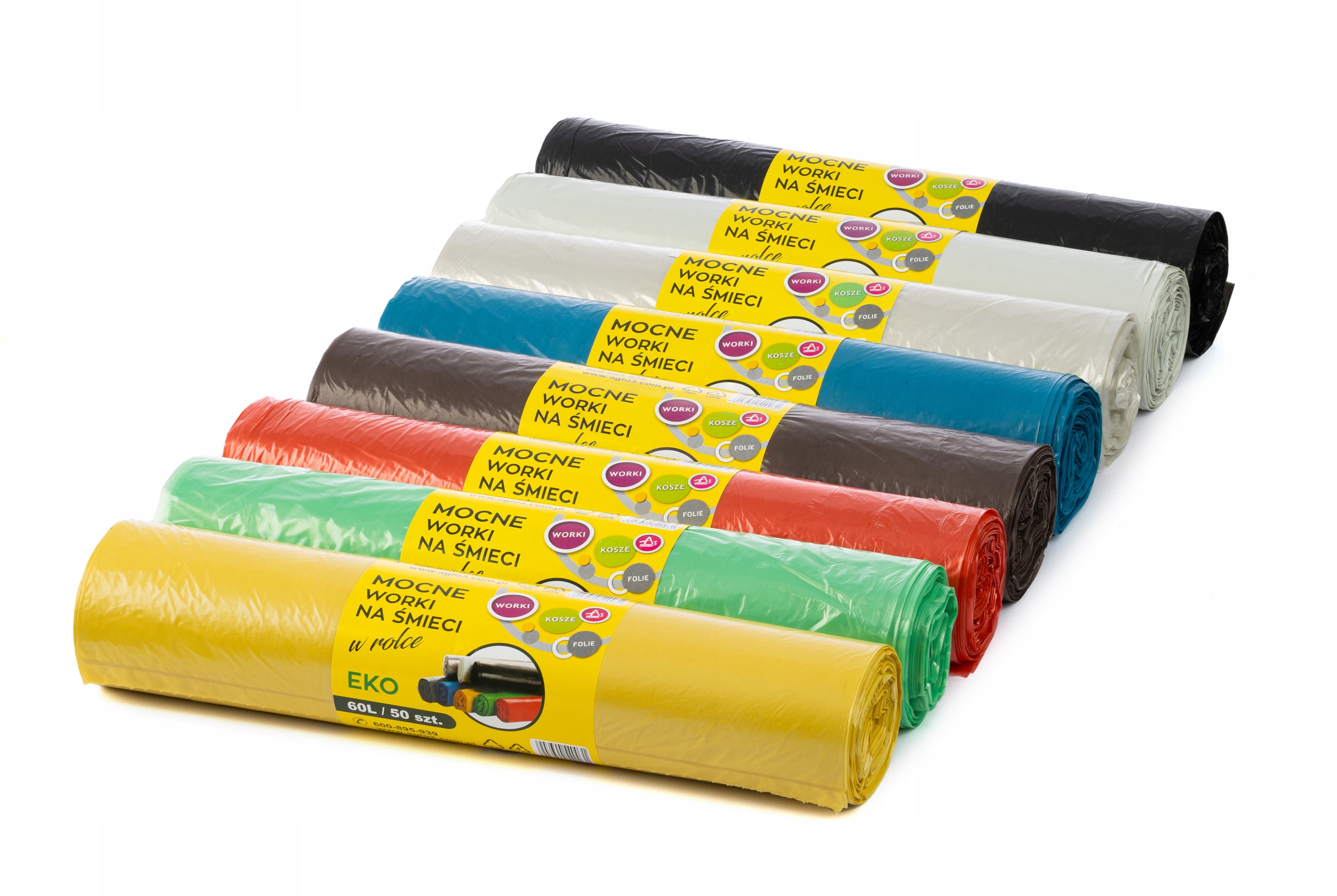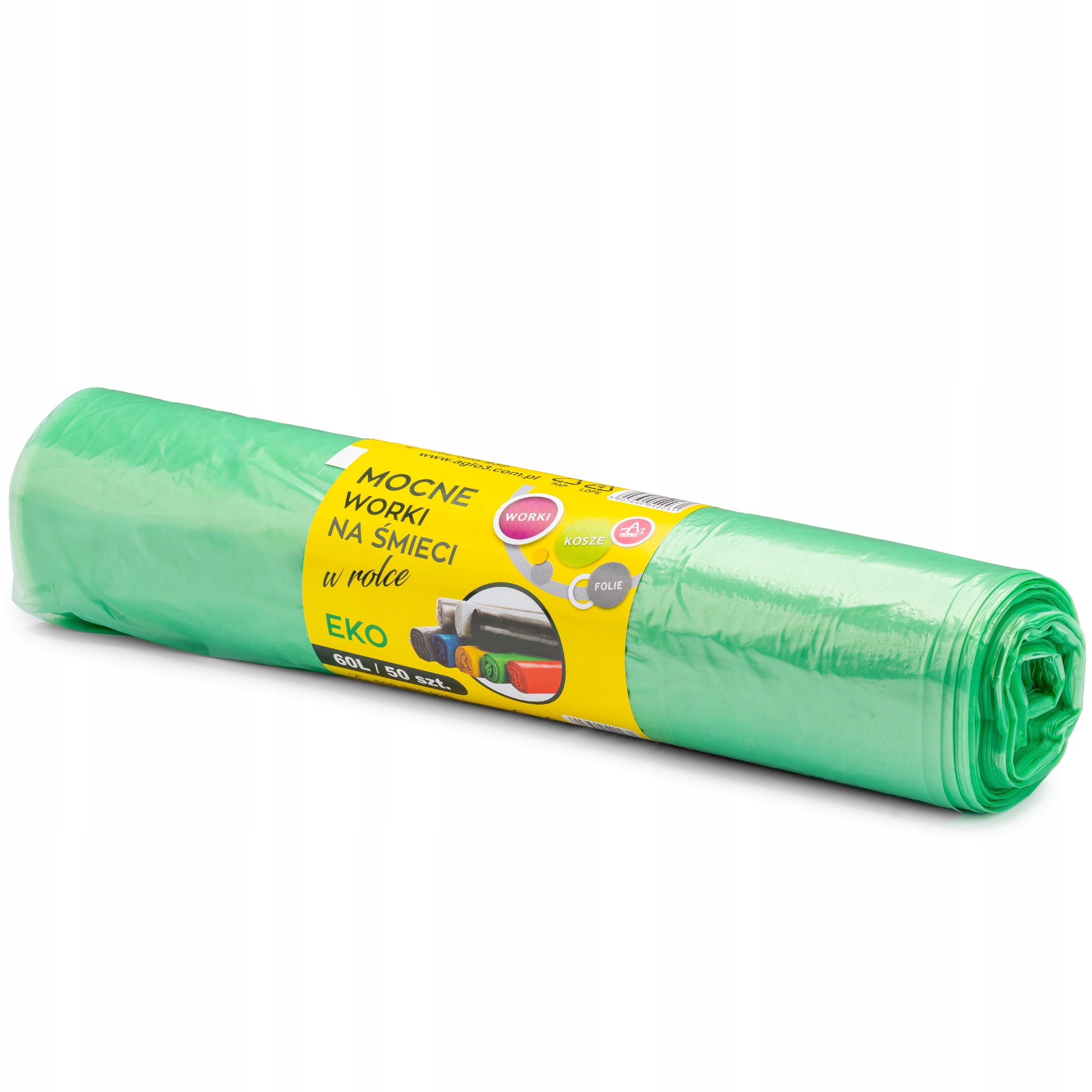 WORKI NA ŚMIECI ODPADY 60L 50 SZT. W ROLCE ZIELONE - MOCNE I WYTRZYMAŁE