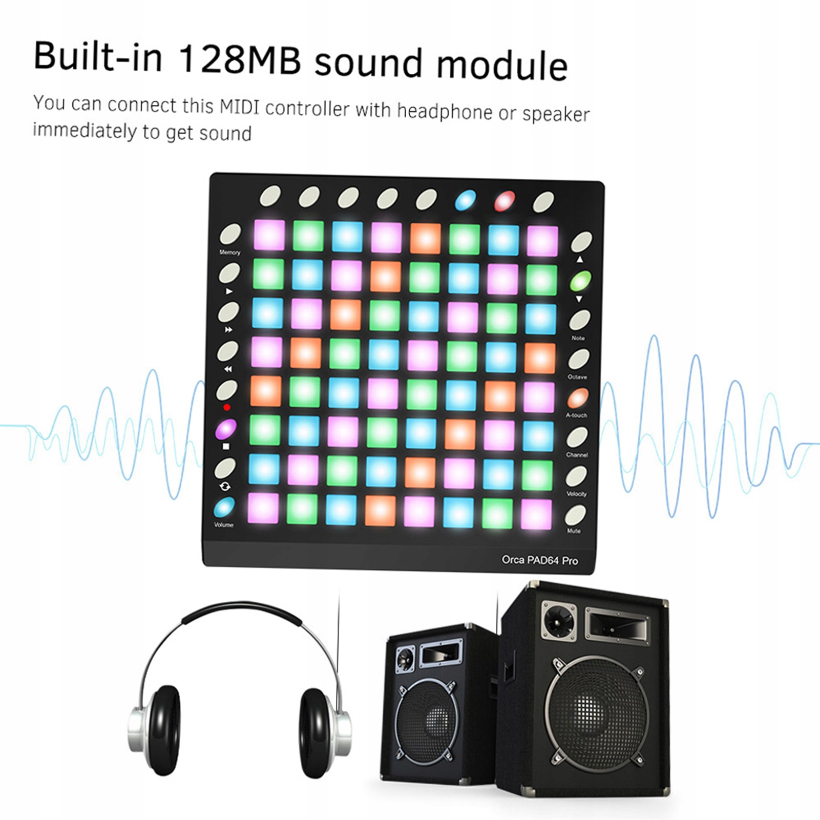 Worlde Orca Pad64-A Pro Portable USB MIDI DRUM CONTROLLER PAD 64 RGB MD