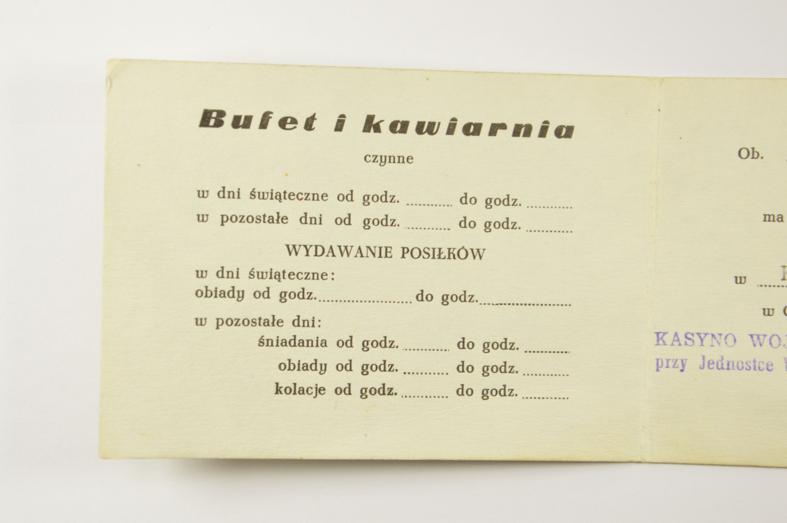 WP PRL GRUDZIĄDZ KASYNO WOJSKOWE KARTA WSTĘPU